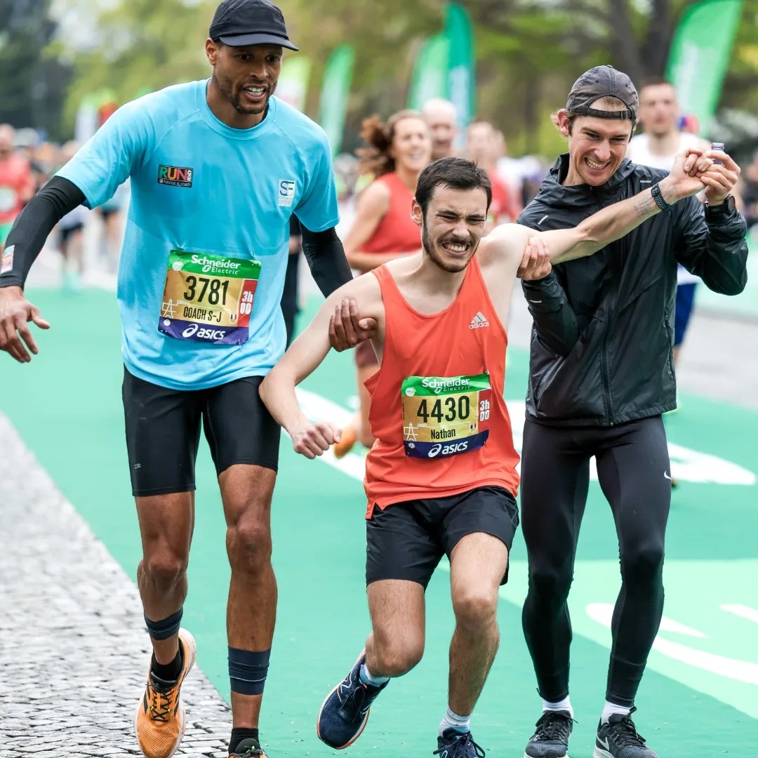 Le sport nous fait vivre des émotions, et celle-là m’est restée en tête. Certains peuvent me voir comme un « héros », mais pour moi, aider les autres, c’est juste normal. On devrait tous se soutenir et s’aider à progresser. Quand je l’ai vu tomber tout près de la ligne d’arrivée, je ne pouvais pas passer à côté et célébrer ma réussite. Si je ne l’avais pas fait, je n’aurais pas pu me regarder les jours suivants. Nous étions au Marathon de Paris et il ne pouvait pas rester en échec. Nous avons tous connu des périodes plus difficiles où notre corps nous dit stop, et dans ces moments, nous aimerions que des personnes nous aident. Comme vous le voyez sur la photo, je n’étais pas seul, il y a ce jeune qui lui aussi a aidé. Dans ce sport, nous sommes autocentrés, car il y a des performances à atteindre et nous ne voulons pas nous décevoir, car nous nous fixons des objectifs. Mais ce sport nous libère et nous procure beaucoup d’émotions. Je veux communiquer mon sourire et ma positive attitude. J’aime quand les gens sont heureux. Si je peux procurer de la joie à quelqu’un, ma mission est réussie. Si cette personne avait terminé sa course à quatre pattes, cela aurait entaché mon plaisir. Ça aurait été un échec de ne pas le secourir. »