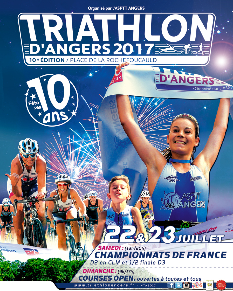 Le club de l’ASPTT Angers organise tout le week-end, la dixième édition du Triathlon d’Angers. La manifestation accueille quatre grandes épreuves fédérales : une manche des championnats de France de Division 2, en version contre-la-montre par équipes chez les filles et chez les gars, et la ½ finale des championnats de France des clubs de Division 3 de la zone B, en version classique. Le dimanche matin, on retrouvera les relais XS.
