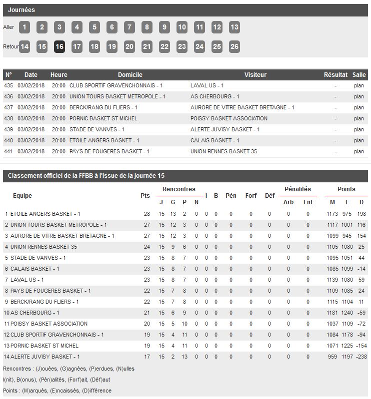 Suivez en direct, l’évolution des scores de la 16e journée !