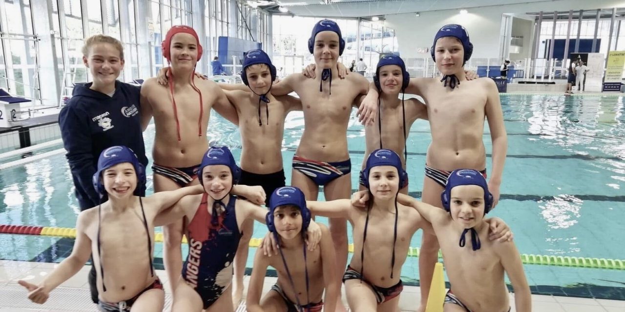L’équipe d’Angers Natation Water-polo : FERRIER, GNANOU, OSSENT (1 but) BLOINO, HAUTBOIS, BLOINO, JAN, LE TALLEC (4 buts), PRIGENT BIDON, CROCHET Entraîneur : Charlotte MOREIRA & Tugdual LIVENAIS.