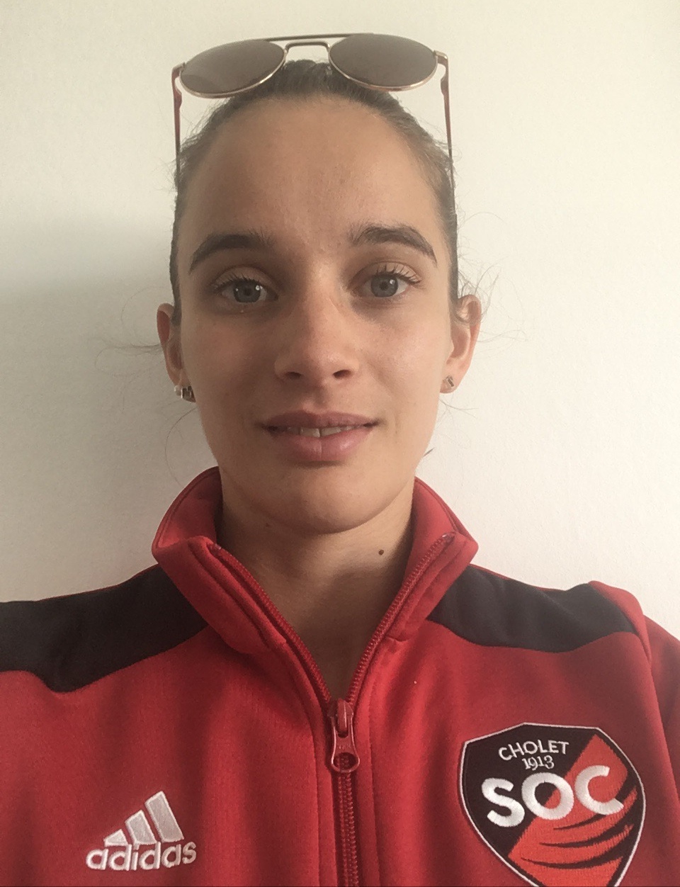 « J’ai passé un bac hôtellerie-restauration, cela ne m’a pas plus, j’ai donc ensuite fait une année à l’IRSS, où j’ai effectué des stages au SOC (dans l’administratif et dans l’encadrement des U14 Féminines), mais également à l’ASPTT (découvertes de multiples activités). Ensuite, il me fallait une structure d’apprentissage. Le SO Cholet ne m’a rien proposé, je suis donc partie à l’ASPTT Cholet. J’ai eu mon BPJEPS APT (Activité Physique pour Tous) et j’ai été embauchée à l’ASPTT Cholet pour trois ans. Je me suis occupée d’activités variées pour des publics différents, j’étais également responsable du football féminin qui est passé de dix à une trentaine de joueuses. Sur ma dernière année à l’ASPTT, j’ai passé mon BMF (Brevet de Moniteur de Football), que j’ai obtenu. J’arrivais en fin de contrat, l’ASPTT et le SOC m’ont fait une proposition et j’ai décidé de choisir celle du SO Cholet. »