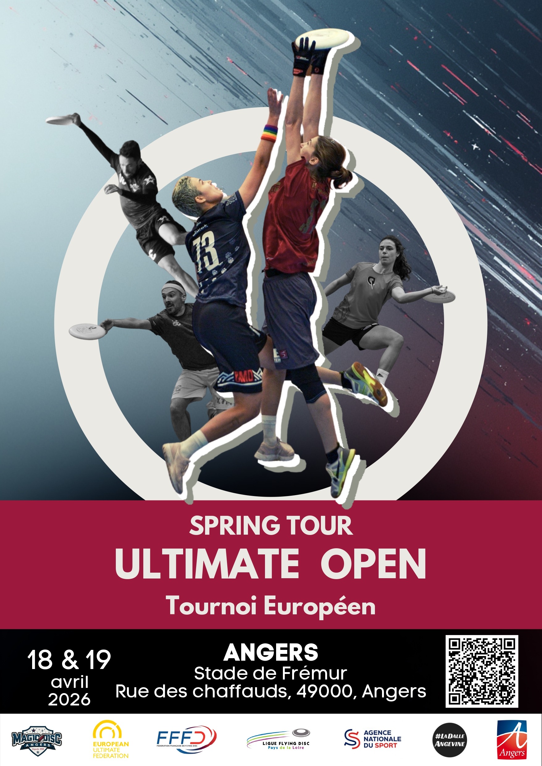 Les 18 et 19 avril prochains, Angers accueillera le Spring Tour 2026. Cette compétition regroupera les meilleures équipes européennes, parmi lesquelles l’équipe Open Angevine des Magic Disc d’Angers qui partira à la conquête de la scène européenne. Au rendez-vous, des équipes Françaises, Belges, Anglaises et Irlandaises.