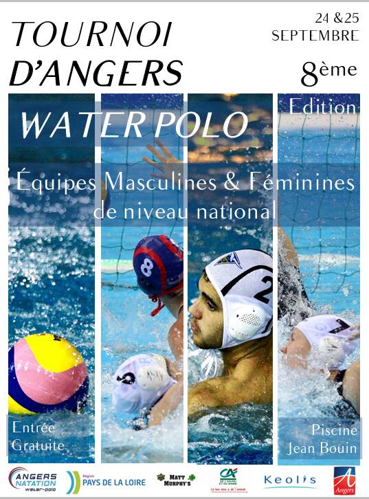 Ce week-end, ANGERS NATATION WATER-POLO organise son 8eme tournoi d’avant-saison à la piscine Jean BOUIN. Huit équipes masculines et deux équipes féminines vont se confronter à partir de 13h30, ce samedi. Les matchs reprendront le dimanche matin, à partir de 8h30. La finale aura lieu vers 16h30, dimanche après-midi.