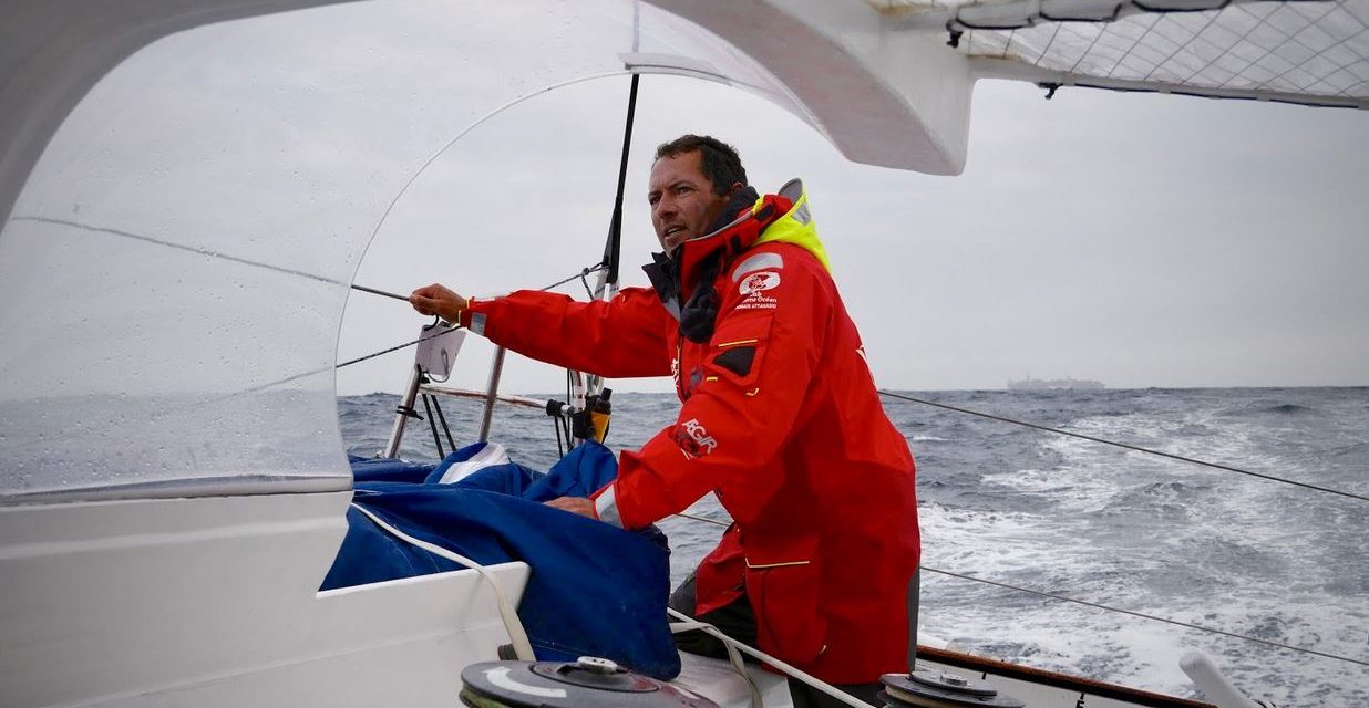 Ce mercredi, Romain Attanasio a dû monter en haut du mât. Une opération délicate qu’il a pu réaliser en profitant d’une légère accalmie. En cause ? Le chariot de tête de grand-voile bloqué en haut du mat et qui par conséquent l’empêche de réduire la surface de sa grand-voile. Or, impossible de poursuivre sa progression sans parvenir à réparer, particulèrement en vue des conditions de vent difficiles prévues dans les mers du Sud. En somme « c’est comme si un accélérateur de voiture était bloqué sur 80 km/h » confie un membre de son équipe.