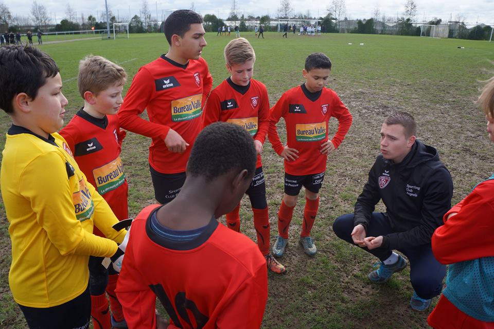 « Le club d’Angers SCA est un club de 450 licenciés (plus de la moitié sont des jeunes de moins de quatorze ans). Depuis août, la ville d’Angers nous a permis de proposer encore plus de qualités sur nos séances entraînements, puisqu’elle a refait à neuf, notre terrain synthétique et elle a modifié nos deux petits terrains en falun, en terrain synthétique. Nous avons cinq équipes en U11, quatre équipes en U13 dont l’équipe une que j’encadre en championnat Élite, deux équipes en U15 dont la première en PH, deux équipes en U17 dont la première en DH Élite, une équipe U19 en DS avec pour objectif de monter en Ligue, et trois équipes seniors dont la première en PH. Le club, à travers le football, n’oublie pas qu’il est un foyer d’éducation pour tous les jeunes et c’est à travers cette idée que les bénévoles, les dirigeants, les éducateurs et les parents partagent des valeurs de respect, de solidarité, d’entraide et de plaisir. »