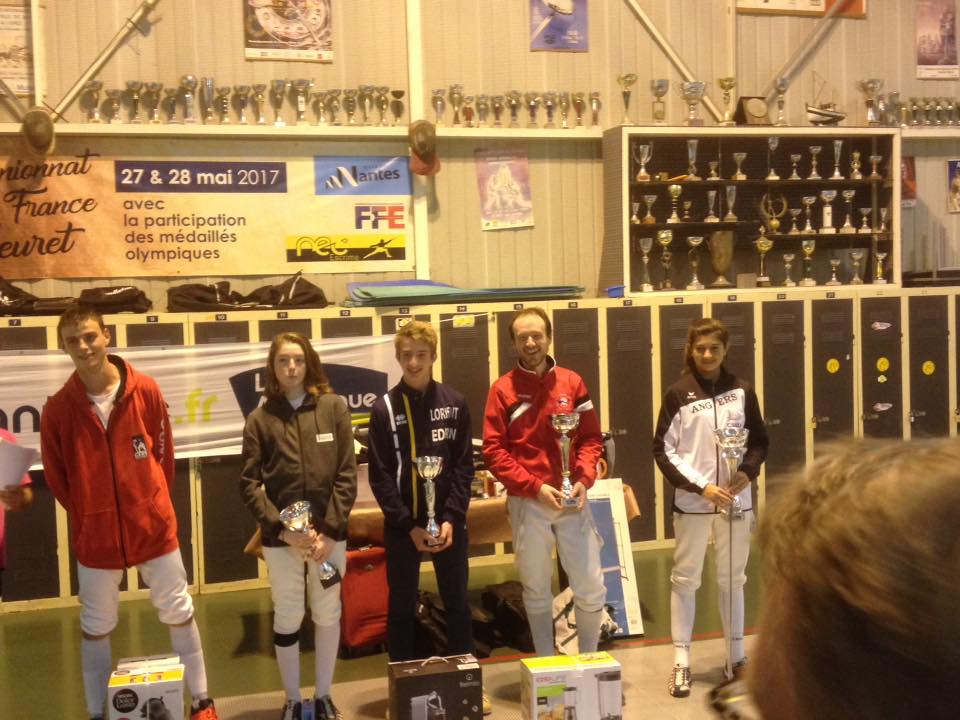 Laissons Alexandre et Denis poursuivre leurs matchs de tableau, et retournons à Livry : Samuel tombe face au 7e National, et après un match tendu, s’incline 15-8 ! Très belle performance pour Sam qui finit 51e de cette compétition ! Rappelons que le jeune homme a dix-huit ans et il est surclassé sur une compétition d’une rare difficulté pour les seniors !