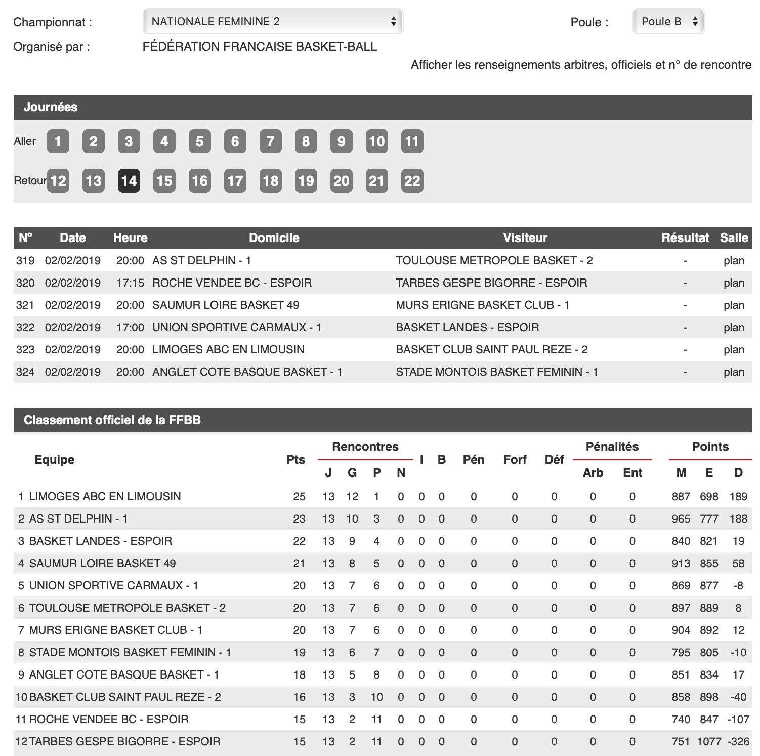 Championnat de Nationale Féminine 2, Poule B, 14e journée.