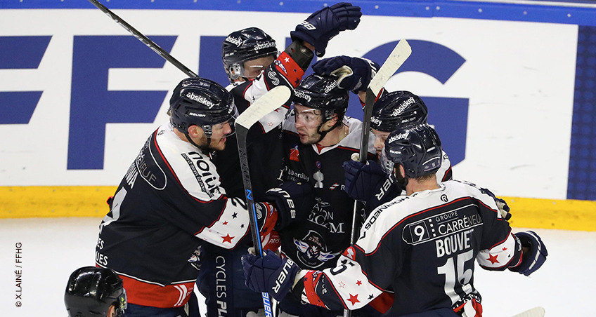 Buts : Johan LORRAINE (8’46), Bostjan GOLICIC (13’52), Benjamin LAGARDE (35’27) et Julien CORREIA (36’09) pour les Rapaces de Gap ; Philippe HALLEY (18’02), Danick BOUCHARD (19’01), Teo SARLIEVE (25’38), Neil MANNING (29’14) et Robin GABORIT (62’42) pour les Ducs d’Angers.