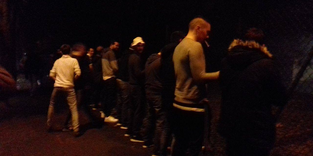 En photo : L’arrêt pipi à Angers (trajet retour à mi-chemin de Candé) après la victoire, 28 personnes sur 60 ont ressenti le besoin d’aller se soulager. Bizarre…