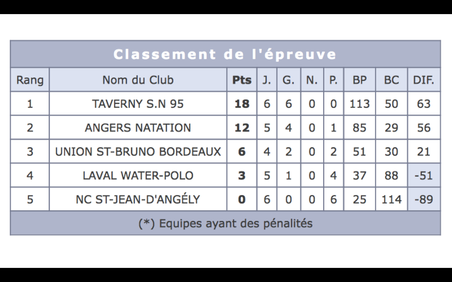 NC Saint-Jean-d’Angély (5e) – Angers Natation Water Polo (2e) : 2-26 (0-7 ; 1-7 ; 1-8 ; 0-4)