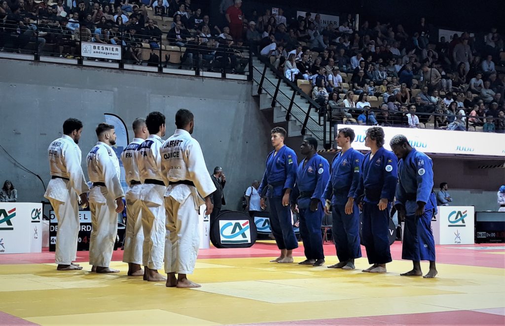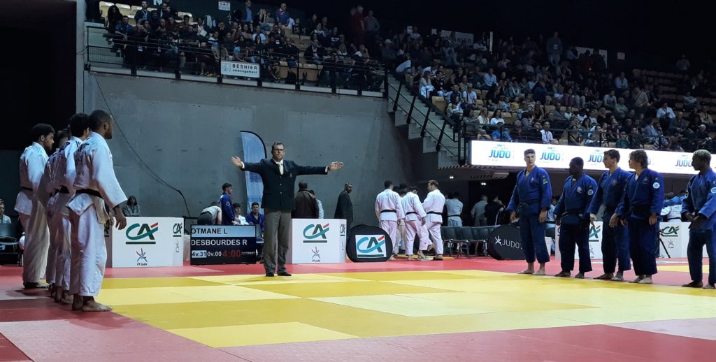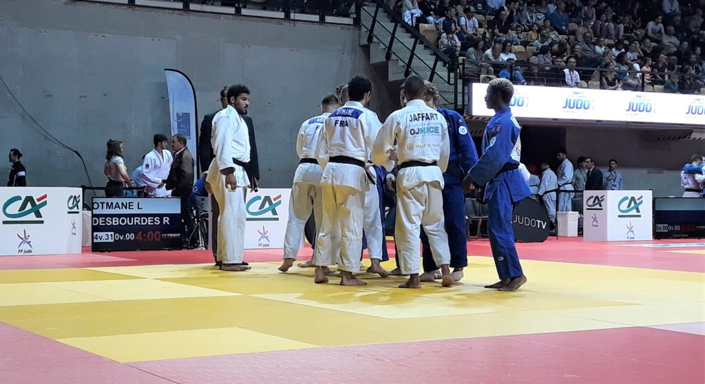 Plus tard, dans la journée, ces championnats de France par équipes ont vu l’ESMB Judo réaliser le doublé. En effet, tout comme leurs homologues féminines, samedi, les hommes se sont imposés en finale face au tenant du titre le Sucy Judo. En kimono blanc, l’Étoile Sport du Blanc-Mesnil a mené deux manches à zéro avant de se faire rejoindre à deux manches partout. Il a fallu un troisième match décisif pour désigner le champion de France par équipes. Ce combat fut indécis et il aura fallu attendre la mort subite pour que les blancs remportent la victoire face aux kimonos bleus de Sucy Judo (3-2).