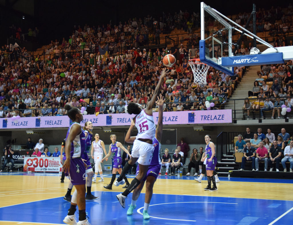 Reprise du jeu et Landerneau qui revient plus agressif en défense. Les mains sont de sortie et toutes les passes sont contestées. Le rythme s’accélère mais Angers reste toujours en froid avec son adresse. Il faut trouver LA bonne situation pour que les Angevines puissent approcher le panier, bien gardé il est vrai par des Bretonnes revanchardes. Accrochées dans son antre, Landerneau est venu accompagné de plus de 300 supporters, dont Paul Leguen qui a pu troquer les pelouses vertes de football pour le parquet de l’Arena Loire, et bien décidés à troubler la douceur locale. Personne ne lâche ne serait-ce qu’un bout de terrain. Tant est bien que le second quart temps est l’image du premier: deux équipes solides défensivement qui ne lâcheront rien avant la fin de la rencontre. (fin du 2e quart temps : 24-18)