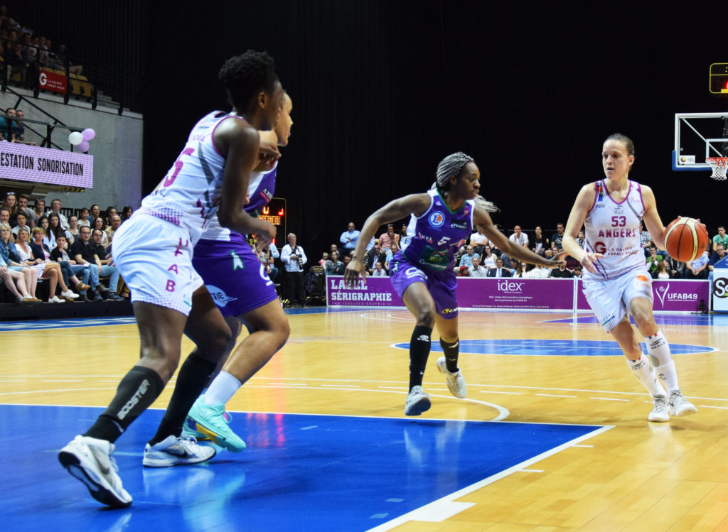 Le début de rencontre est serré: les deux équipes ne voulant pas encaisser le premier panier. La tension est palpable entre les deux cinq majeures. Les premières actions manquent de réussite. Toutefois, Angers s’en tire bien, poussées par le public venu en nombre ce soir. A tour de rôle, les deux protagonistes se rendent coup pour coup. Impossible de déterminer laquelle des deux équipes prendra l’avantage sur l’autre : c’est ça aussi que l’on aime dans des Finales de play-off. A peine un panier ajouté pour les Angevines que les Bretonnes répondent dans la foulée. La marque est répartie pour le moment entre DJALDI-TABDI et CHRISTMANN côté angevin, et LOGAN et BRUMERMANE côté breton. Au bout du compte, dix premières minutes très disputées et qui se terminent sur le score de 12 à 10 en faveur de l’UFAB.