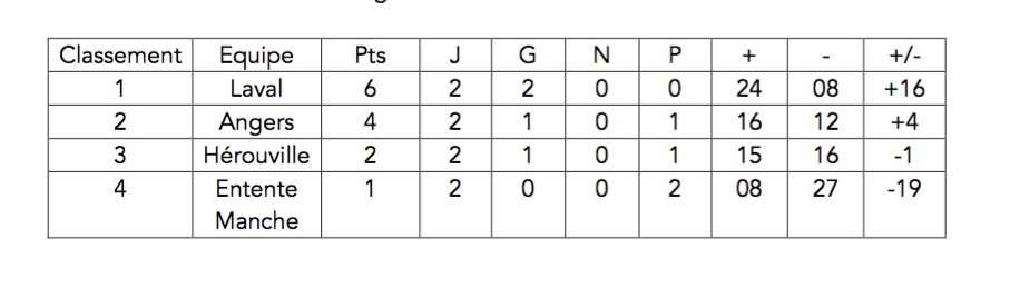 Opposé à Laval (vainqueur de l’Entente Manche lors de la seconde demi-finale) Angers savait que la rencontre allait être tout autre. En effet, bien en place Angers arrive à prendre les commandes de la rencontre avant de faire plusieurs erreurs qui voient les Lavallois passer devant au score deux buts à un, puis de creuser l’écart (six buts à un) face à des Angevins sans solution. Mais, piqué au vif, Angers refuse d’abdiquer et se lance dans une mission remontée. Plus agressifs, défensivement, plus justes offensivement, les Angevins font douter Laval, mais s’inclinent d’un petit but (8-7). Malgré cette défaite, Angers prend la seconde place du classement de ce championnat et repart de la Mayenne, avec une certitude… cette équipe a du caractère.