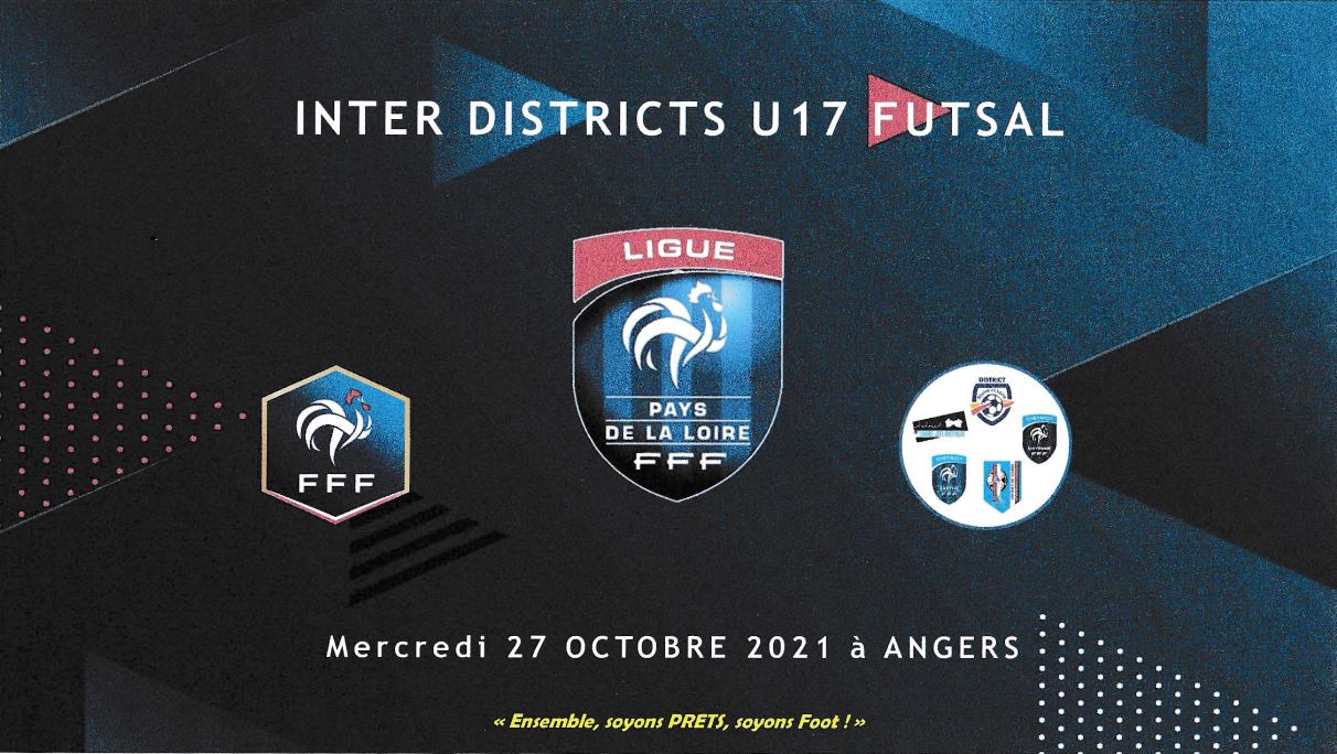 La Ligue de Football des Pays de la Loire organise, le mercredi 27 octobre à Angers, une compétition inter-district U17 de Futsal. L’accueil des délégations se fera à partir de 9h30 au gymnase André Bertin pour terminer à 16h30. Les objectifs seront de préparer au mieux le suivi des générations U16 et U17 et d’apporter une continuité avec l’lnterdistricts U15, tout en renforçant le lien avec les clubs libres et Futsal et de favoriser les passerelles Foot / Futsal, afin de préparer au mieux les Inter Ligues U18. L’observation des joueurs susceptibles de participer au stage régional U16/U17 Futsal (le mardi 21 décembre 2021), puis pour les meilleurs U17, au stage régional U17/U18 (du 16 au 18 léwier 2022) sera aussi l’attractivité de cette journée de Futsal.