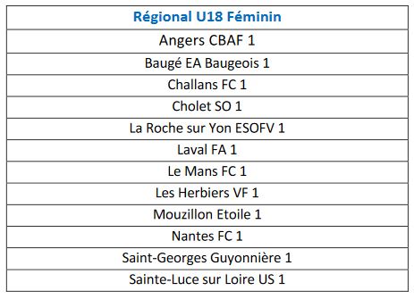 Composition des groupe de R1, R2 et U18 des équipes féminines du Maine-et-Loire. Posté par Sébastien | 17 Juil 2018 | Football, Régional