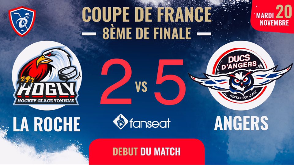 Dimanche 25 Novembre 2018 : Angers – Amiens (19h00) à la patinoire du Haras.