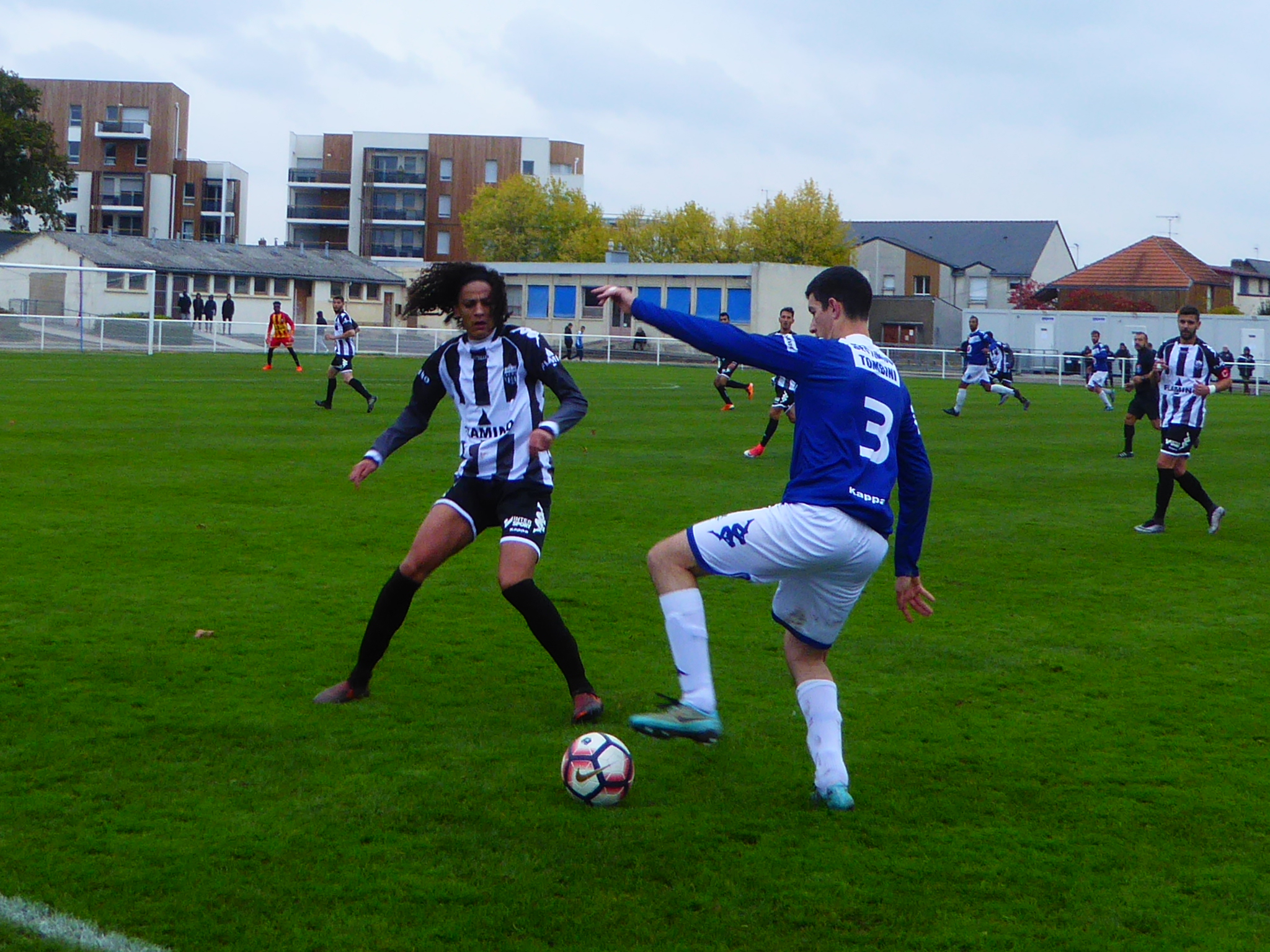 Pourtant, les Angevins vont avoir l’occasion de prendre l’avantage à deux reprises dans le premier quart d’heure. Au bout de trois minutes de jeu, Maigari voit son occasion être sauvée par un défenseur adverse (3e). Puis sur un ballon de Bouhafoura pour Mingot, ce dernier sert Levron qui manque son lob sur le gardien de but adverse, le ballon passant juste à côté du cadre (15e). Entre-temps, les Goulainais ouvrent le score sur leur première occasion du match. A la suite d’une contre-attaque, puis d’un centre côté gauche de N’Soumbou, Paitier marque d’un plat du pied (0-1, 10e). Après un premier quart heure animé, le match va devenir tactique sans réelle occasion sérieuse de but. Il faudra attendre l’heure de jeu pour assister à deux buts en deux minutes. A la suite d’un coup franc excentré côté gauche de Frioux et d’une erreur défensive angevine, Paitier dans les dix-huit mètres en profite pour surgir et doubler la mise (0-2, 63e). A peine remis de ses émotions, que Bestani crochète Levron dans la surface de réparation. Hamard transforme le penalty d’un contre-pied (1-2, 64e). Dans le dernier quart d’heure, Angers NDC va tout tenter pour égaliser, mais sans réussite. Sur un coup franc excentré de Bien-Aimé, Mingot tout seul au deuxième poteau, rate l’immanquable dans les six mètres (81e). Corner côté gauche d’Hamard pour la tête croisée de Levron, qui passe juste à côté du poteau opposé (87e). Dans les arrêts de jeu, les Angevins manqueront une nouvelle occasion par manque de réussite (90e+6). Les Nantais auront tenu jusqu’au bout les assauts adverses et poursuivent leur aventure dans la compétition.