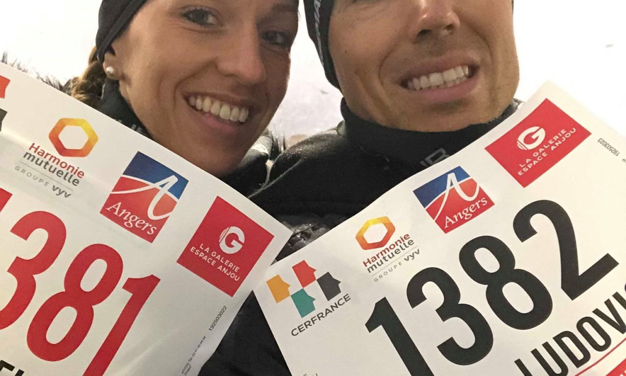 Lundi 11 novembre 2019, Cross du Courrier de l’ouest, Parc de Pignerolle à Saint-Barthélémy d’Anjou :Ce matin, c’était la rentrée des classes avec une coupure de 15 jours depuis mon retour de l’IRONMAN 70.3 MARRAKECH. Juste quelques footings sans intensité. Je me suis engagé avec ma chérie sur la course LES GRANDES FOULÉES DU PARC avec un départ à 9 heures. Je ne suis pas spécialiste de la discipline, mais ma chérie adore. De toute façon, c’est toujours positif de se confronter à des spécialistes de la discipline.Ce matin debout à 6h50, en entendant la pluie sur le velux, cela annonce la tendance de la journée et surtout l’état du terrain. Prise du petit-déjeuner d’avant course et ensuite départ vers le château de Pignerolles à 7h30.Arrivés sur place, on se gare le plus proche possible car il pleut vraiment. On descend pour aller chercher le dossard et là, je me pose la question si je vais prendre les pointes ou des running classiques. On constate que sur plusieurs portions le terrain est vraiment gras et boueux donc je me décide pour les pointes.Un échauffement de 8h30 à 8h50, et direction la ligne de départ, car ici ça part très vite. Je me place sur la gauche, dans la partie herbeuse, Elise est juste derrière moi.À 9h00, coup de départ et alors là ça part comme des bombes… Étant en reprise le cœur s’accélère très vite. Je suis environ 35e, je pense. Ensuite, on arrive vraiment dans le sous-bois et là, je constate l’utilité des pointes. Un terrain gras avec beaucoup de relances et surtout je vois que le niveau est costaud… Je gère l’effort et je rattrape au fur et à mesure. À mi-course, on m’annonce 26e, je remonte. Devant ça craque un peu, mais moi, j’arrive à garder mon rythme. Je rattrape et double un groupe de 5 coureurs, mais ensuite, je me retrouve seul, ce qui n’est jamais évident. Je m’oblige à garder le rythme.Je boucle les 10km500 en 38mn58 et 18e au classement général sur 1263. Un joli podium sur ma catégorie 2e sur 92. En progression par rapport à 2018.Ma chérie Elise s’améliore aussi depuis 2018 et termine 16e femme sur 247 en 50mn46. Niveau catégorie 5e sur 63.Les conditions climatiques précédant la course n°1 ont été complexes et ont vraiment fait un terrain difficile. Mais c’est ça un vrai cross.On est satisfait de nos courses respectives pour nous, triathlètes dans ce monde du cross.La reprise a sonné, donc cette après-midi, on avait session natation à AQUAVITA.À très bientôt.Elise et Ludovic