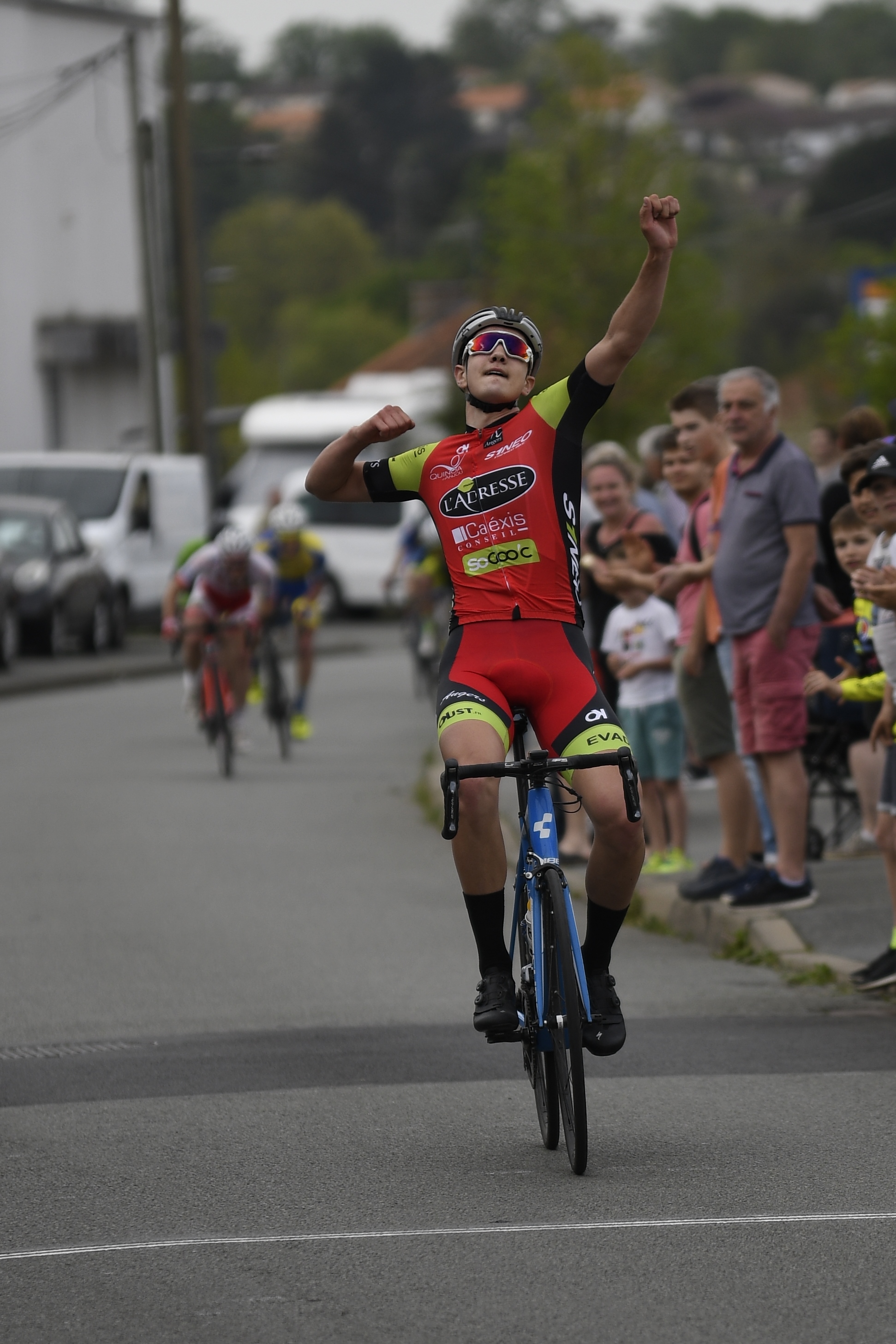 En cadets, Anatole Leboucher (Team U Anjou) gagne devant Théo Rachitaux (Machecoul) et Titouan Papin (Beaupreau).