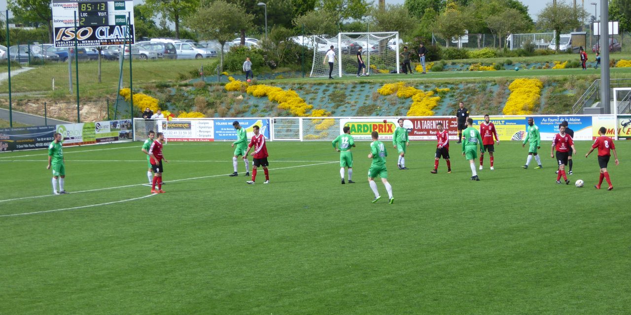 Le centre-tir de Nicolas passe juste au-dessus du but adverse (16e). En face, le tir lobé tutoie la barre transversale, mais plus de peur que de mal pour les locaux (24e). Alexandre tente sa chance à l’entrée de la surface, mais Contassot capte la balle (24e). Coup sur coup, Gabriel bute sur Contassot bien présent (30e). Contre le court du jeu et sur un ballon anodin, Dulin envoie une tentative lobée, à l’angle de la surface, qui trompe Bruneau (0-1, 31e). Puis, bien lancé en profondeur, Champion se présente face à Bruneau, aux dix-huit mètres, mais ce dernier s’interpose (38e). On se dirige vers la mi-temps, quand dans les arrêts de jeu, Larbi Mansour, bien servi par Gabriel se présente face à Contassot et ne manque pas son duel pour égaliser (1-1, 45e+3). Le but ne pouvait pas mieux tomber, juste avant la pause. Dès le début de la seconde période, Champion tire au-dessus (55e). Puis, sur un centre côté droit, la reprise croisée de Dulin passe tout près du poteau opposé (58e). Bouchemaine réagit par Dadouche, qui part seul au but, mais il bute sur Contassot (63e). Beau mouvement de dribbles dans la défense adverse, mais Alexandre tergiverse et le ballon est dégagé en corner (74e). Dans la foulée du corner, Karcher est plus prompt pour reprendre le ballon, bien démarqué au second poteau (2-1, 75e). Kanga récupère le ballon au milieu du terrain et décoche une frappe à l’entrée de la surface, qui passe juste au-dessus. Bouchemaine assure l’essentiel, à savoir la victoire, avant son match décisif pour le maintien, dans quinze jours.