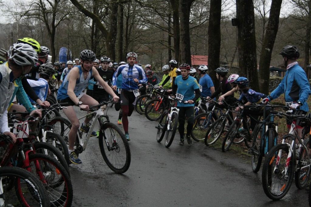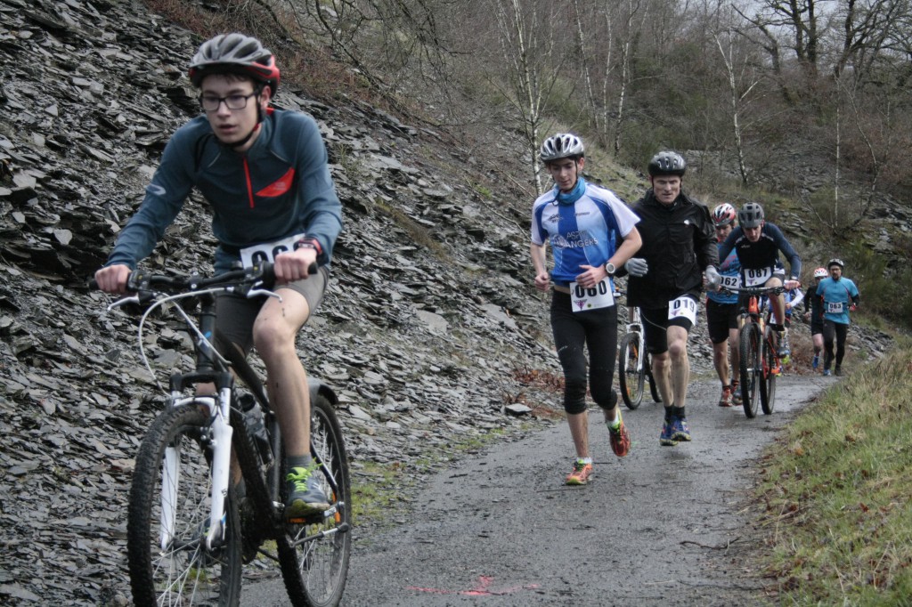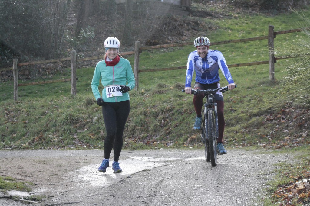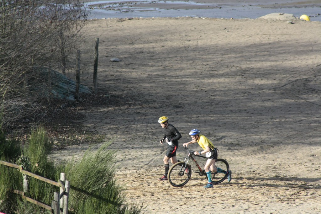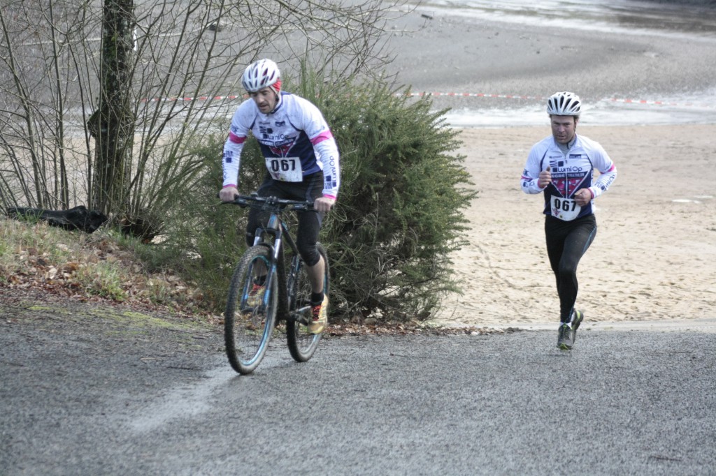 Des noms d’équipes en effet, car en équipe bien sûr. Le RUN AND BIKE se pratique à deux. Un VTT pour deux, l’un court pendant que l’autre pédale, puis changement à volonté avec seules contraintes de rester proche l’un de l’autre et de se donner le VTT de main en main. Alors, on vient entre copain, en couple, entre copine, en famille…