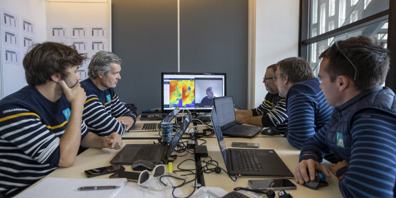Dans les équipes les plus performantes, le routeur travaille systématiquement en binôme avec un régatier qui a navigué sur le bateau. Dans la cellule météo organisée chez Mer Concept pour SVR Lazartigue et Koésio, Jean-Yves Bernot retrouvera non seulement Tom Laperche, skipper remplaçant de François Gabart, mais aussi Yann Eliès, ancien co-skipper d’Erwan Leroux.