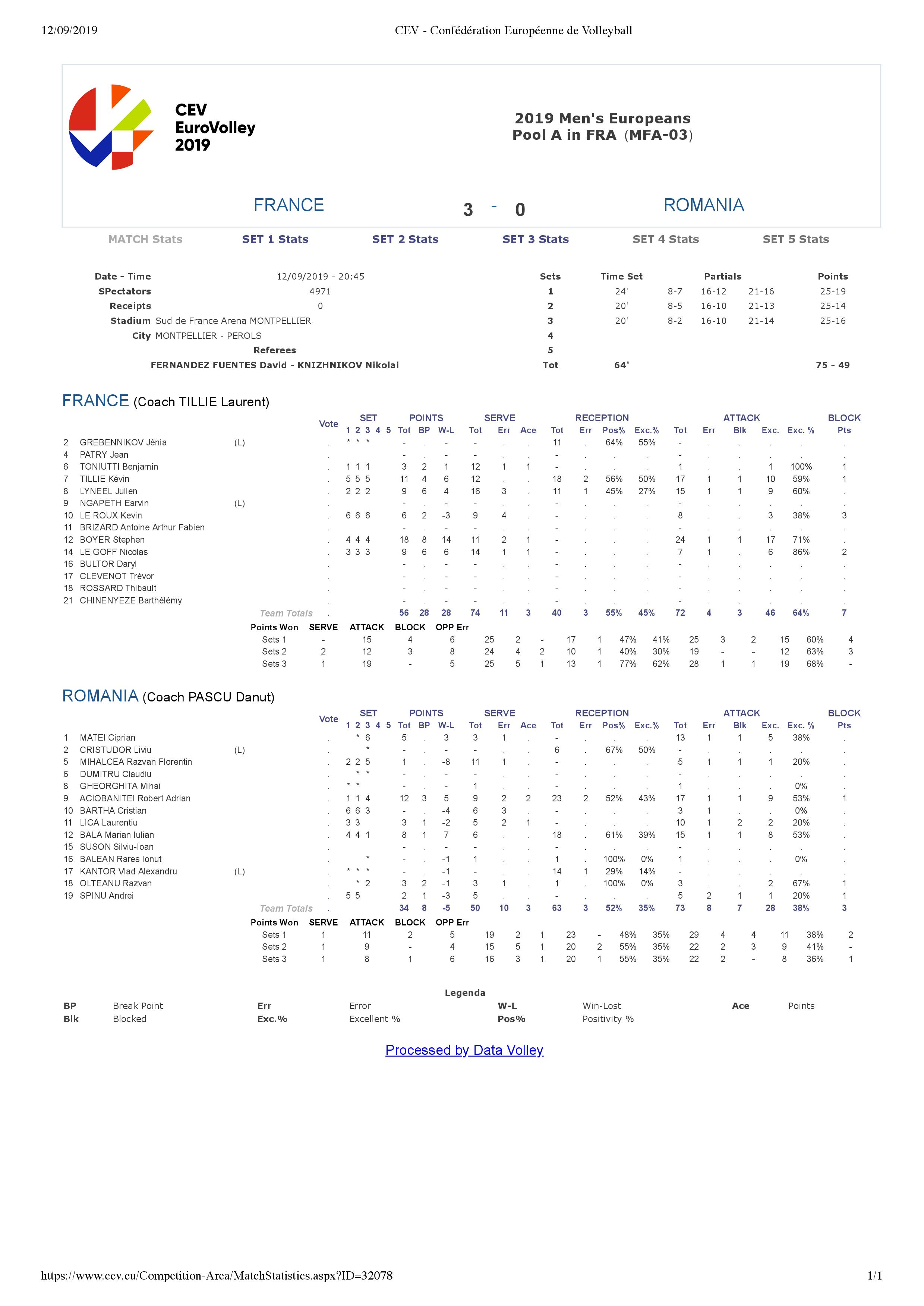 D’entrée de jeu, les hommes de Laurent Tillie sont apparus concentrés et déterminés face à un adversaire, 27e au classement européen, qui dispute son premier Championnat d’Europe depuis 1995. C’est le Montpelliérain Julien Lyneel qui, le premier, a enflammé la Sud de France en allant chercher un ballon par-dessus la table de marque (10-7). Décidé à imiter son copain et ex-coéquipier sous le maillot de Montpellier, Nicolas Le Goff a ensuite fait parler la poudre, réussissant un 100% en attaque (6 points) lors de ce premier set conclu 25-19.