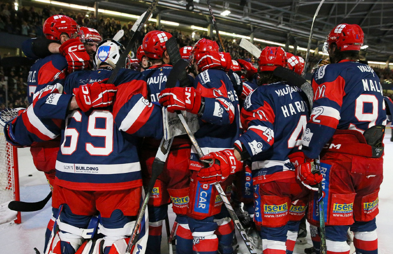 Buts : Hugo NOGARETTO (10’34), Matias BACHELET (50’20), François BEAUCHEMIN (57’52) et Jarod HILDERMAN (59’18) pour Les Brûleurs de Loups de Grenoble.