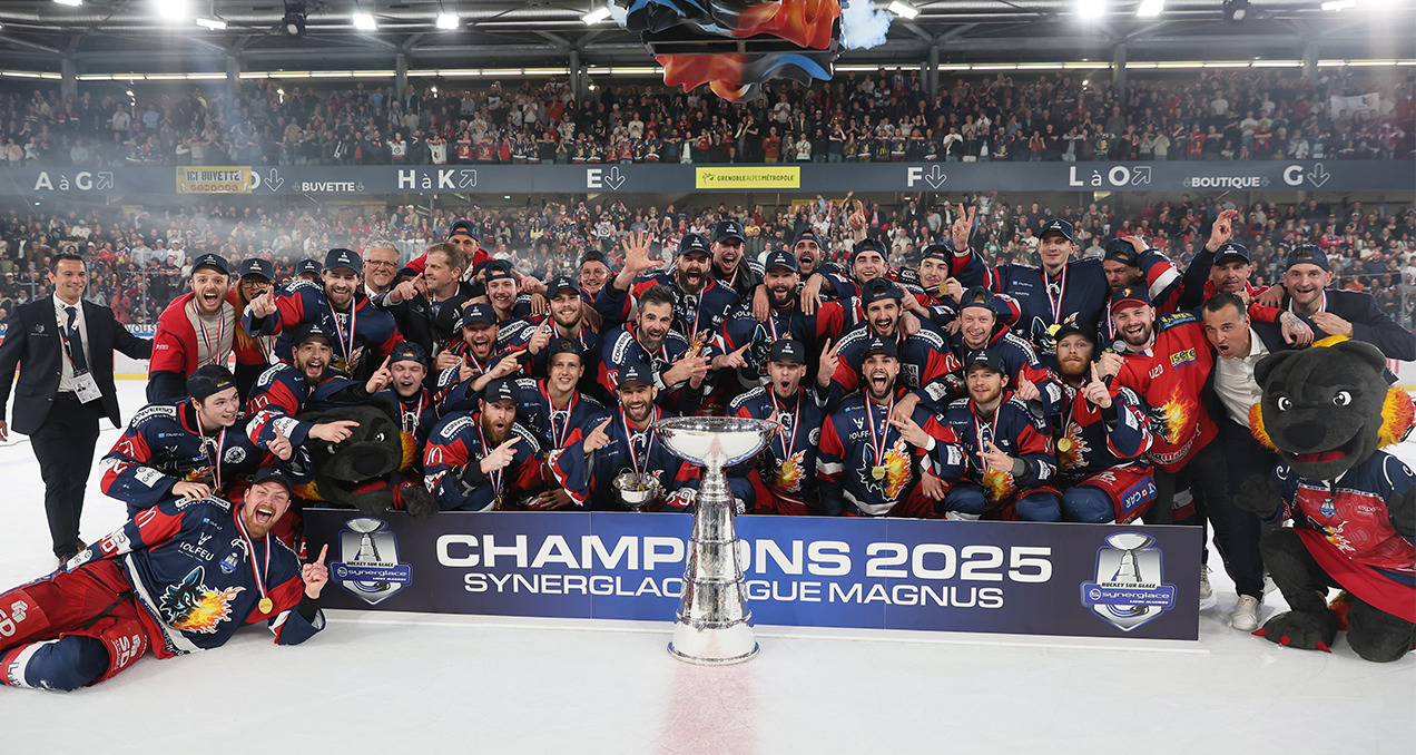 Les Brûleurs de Loups de Grenoble ont été sacrés champions de France pour la neuvième fois de leur histoire, après leur victoire contre Angers, lors du match 5 sur le score de six buts à deux ! Hormis un sursaut d’orgueil lors du match 4, les Angevins auront été dominés durant toute la série et s’inclinent logiquement en finale face à la supériorité grenobloise. Angers enchaîne une sixième finale perdue et attendra encore pour décrocher son premier titre de champion…