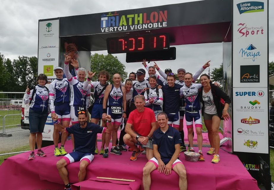 Tout ce beau monde se retrouve alors sur place à Vertou, ce samedi 16 juin 2018, ainsi que les deux équipes constituées de Jimmy PRUDHOMME, Gaël TERRIEN et Grégory GIRAUDEAU pour l’une et Anthony BOURGEAIS, Romain ALLAIRE et Olivier GIRARD pour l’autre, ainsi qu’une belle délégation de supporters entre les femmes et les familles des membres et de quelques triathlètes de la section.
