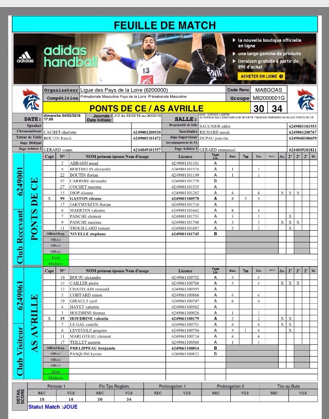 « Nous faisons durer les attaques adverses et nous réussissons à nous concrétiser les attaques placées. La profondeur du banc est déterminante dans ce match, car les entrants ont su apporter un second souffle. Nous ne parvenons pas à profiter des supériorités numériques, mais nous restons dans la course avec un retard d’un but à la mi-temps (16-15). Au retour des vestiaires, nous insistons avec notre défense étagée et les contres nous permettent de reprendre la main sur le match (20-25, 42′). C’est une belle performance collective qui nous mène à la victoire (30-34). Le plus important, c’est d’avoir marqué ce dernier but qui, en cas d’égalité au classement, nous fera passer devant Les Ponts-de-Cé (match aller victoire des Ponts-de-Cé +3). Le week-end prochain, nous rencontrons le RACC de Nantes, une belle équipe de ce championnat, à domicile à 21h. C’est l’occasion rêvée et sans trop de pression pour continuer de montrer la force de notre collectif. »