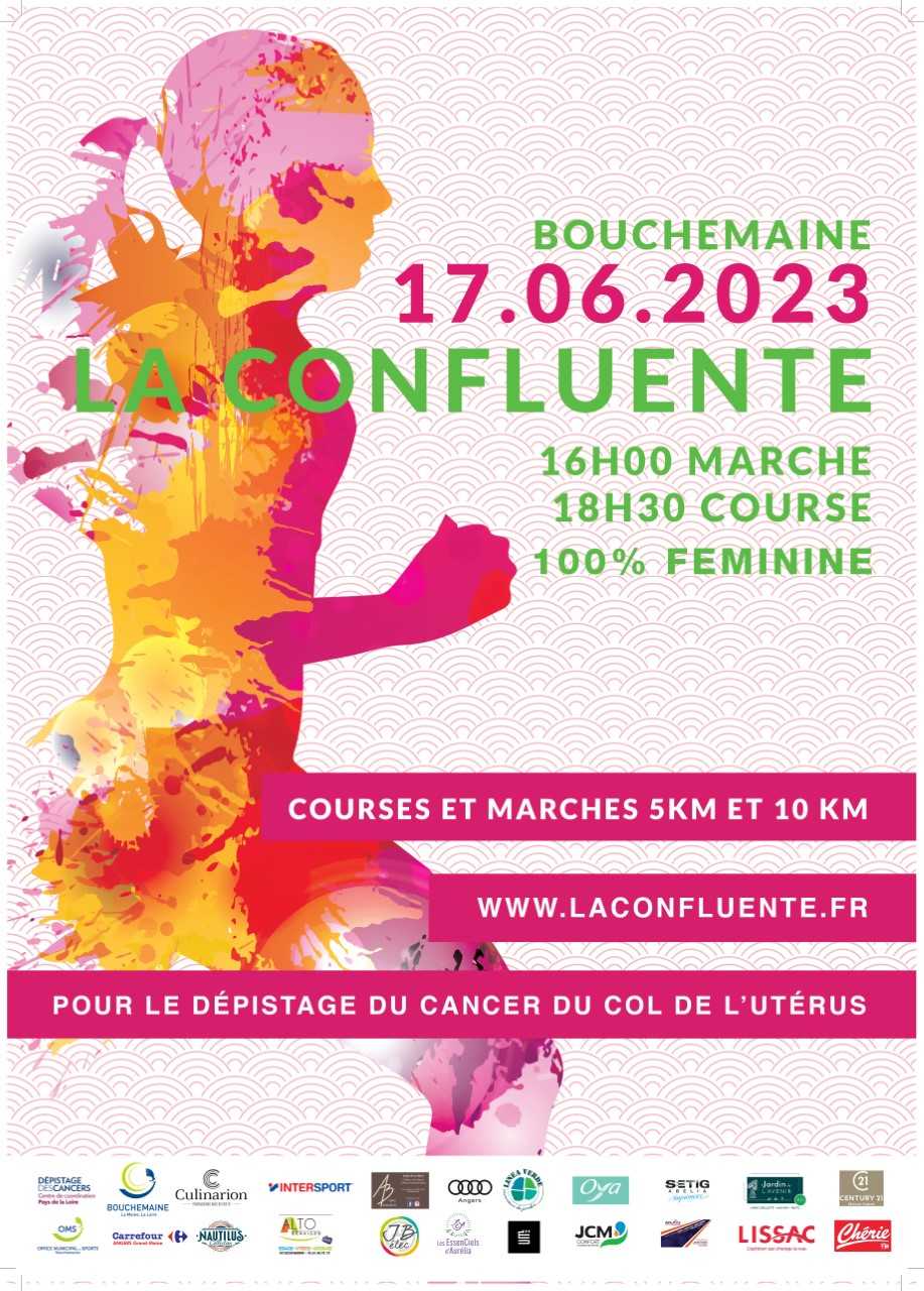 Le samedi 17 juin 2023 aura lieu la treizième édition de la Confluente à Bouchemaine, une course 100% féminine conviviale et engagée. L’objectif en 2023 sera d’atteindre les 500 coureuses et marcheuses.