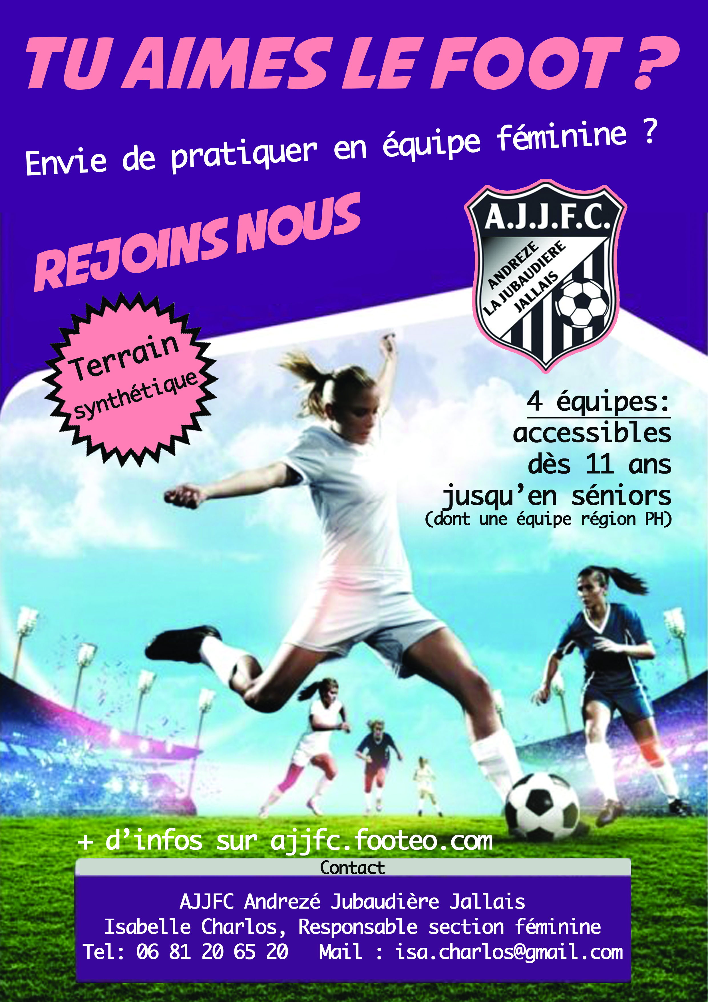 Si vous souhaitez de plus amples renseignements, contactez Isabelle Charlos, responsable de la section féminine au 06 81 20 65 20, par mail à : isa.charlos@gmail.co