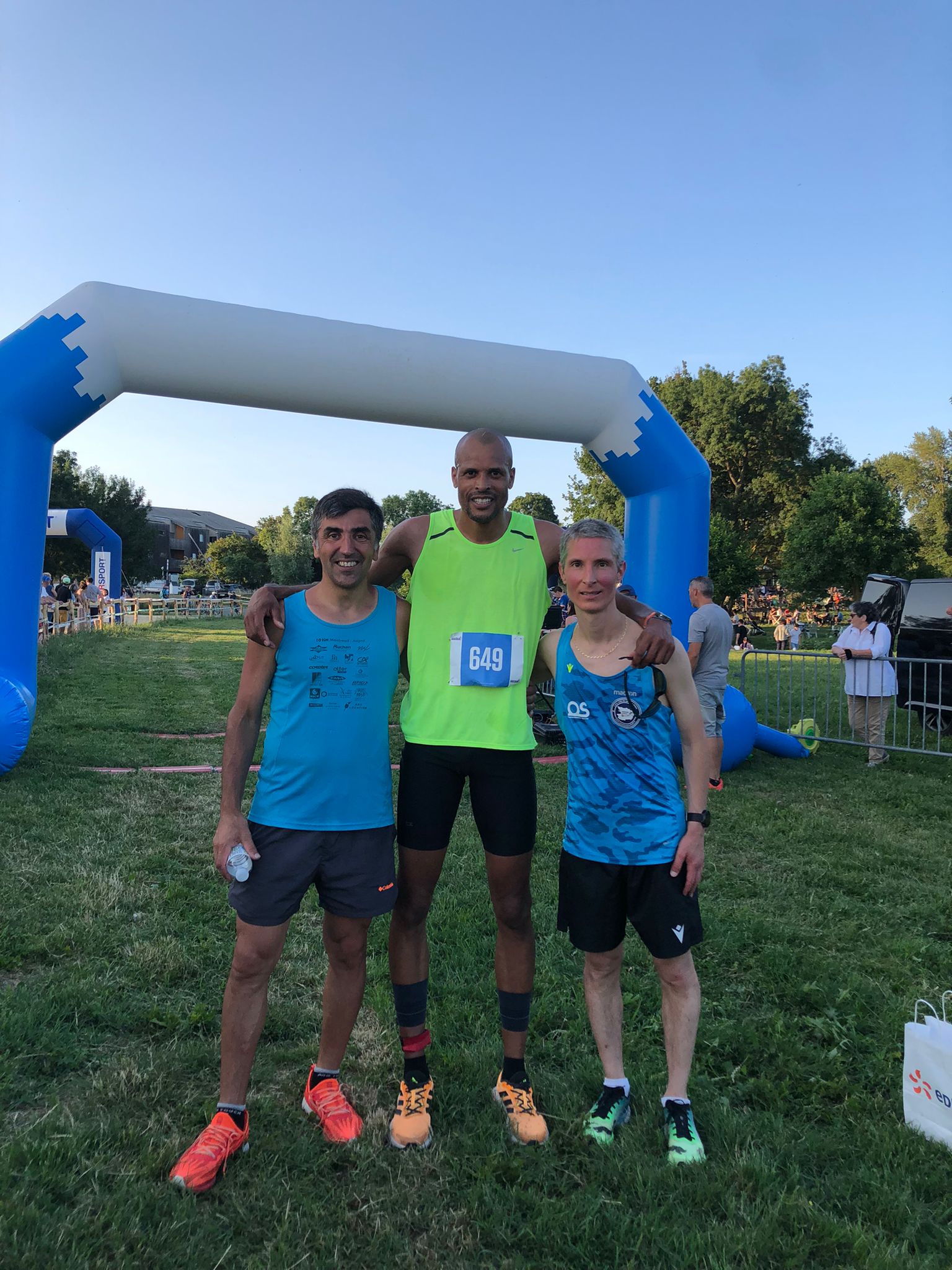 Concernant le relais, il n’y aura eu aucun suspense, et cela dès les tout premiers kilomètres du premier relais. En effet, Ozgur TANYELI de la Team PassionSports49 aura pris seul les commandes de la course dès les premiers kilomètres et sans relâcher son effort, pour creuser un écart conséquent d’entrée de jeu, et accumuler plus de quatre minutes d’avance en moment de passer le témoin au deuxième relayeur, Sébastien MESSONNIER. « Je me sentais vraiment bien pour faire un bon chrono, j’étais en forme et j’avais les jambes », nous confiait Ozgur, à la fin de son relais. Cependant, Sébastien va avoir la mauvaise surprise de chuter au bout de quelques kilomètres, à la suite d’une descente et d’un virage sur la droite, il va trébucher sur une racine d’arbre. « J’ai mal appréhendé la descente, peut-être par manque de lucidité. J’ai malgré tout tenu bon en gérant mon effort. Au final, sans avoir fait d’entraînement significatif depuis quinze jours et sous la chaleur du jour, je suis plutôt satisfait de mon chrono, même si j’aurais pu faire encore mieux, sans la chute » nous racontait Sébastien, à la fin de son relais. Malgré tout, sans entraînement depuis deux semaines, il va réalisé un chrono de 27’41, plutôt correct, après une bonne gestion de son relais. Le dernier relais de la Team PassionSports49 sera effectué par Fabrice SAINT-JEAN, ancien athlète de haut niveau de saut en hauteur et aujourd’hui, coach sport. Il conclura la course de son équipe avec un chrono final de 1h19’13, soit 15,9 km/h de moyenne. « J’ai pris beaucoup de plaisir à participer à ce relais. Le parcours était sympa, dans une bonne ambiance et avec pas mal de spectateurs venus nous encourager. C’est une expérience, que j’espère revivre, l’année prochaine » concluait Fabrice, sur le podium. A côté de cela, le trio de l’Entente Angevine Athlétisme aura tenté de réduire l’écart, mais terminera à près de trois minutes du vainqueur, en 1h22’05 (15,3 km/h de moyenne). La Team Barbeuc complétera le podium en 1h26’00. Cinquante-huit équipes étaient inscrites au relais. La fin de soirée sera conclue dans la bonne humeur et dans une ambiance festive. On pourra remercier les organisateurs de l’événement, à commencer par son responsable, Cédric GUYOMAR’H, ainsi qu’à toute son équipe de bénévoles, sans oublier notre légendaire animateur, Alain DOHIN.
