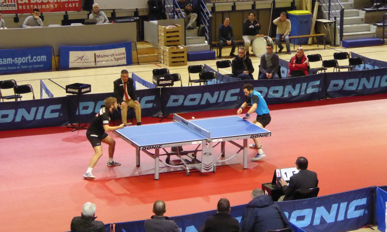 D’entrée de jeu, on a pu constater, que ce serait une rencontre très disputée. Dans le premier match, après avoir remporté les deux premières manches, Persson se fait rejoindre par Monteiro. Il finit par conclure dans la cinquième manche, sans avoir été mis en danger (1-0). Dans le deuxième match, Legout a besoin de deux balles de match pour remporter la première et troisième manche. Entre-temps, Gardos remporte facilement la deuxième et la quatrième. La cinquième manche va finalement être le tournant décisif, pour la suite de la rencontre. Legout fait la course en tête et il a trois balles de match, à la suite. Malheureusement pour lui, Gardos ne lâche rien et inflige cinq points d’affilée à son adversaire, pour donner le point de l’égalisation, à son équipe (1-1). Dans le troisième match, le pourtant très jeune Chartrain, Robinot, a su montrer de la roublardise, pour prendre le meilleur mentalement, sur l’expérimenté Lundquist, qui est totalement sorti de son match, complètement hors sujet, sur le coup. Robinot en a profité pour montrer l’étendue de sa palette technique. Il s’impose sans aucune contestation possible, trois manches à zéro (1-2). Le quatrième match sera disputé et indécis jusqu’au bout. Gardos s’impose dans la première manche avec plus de maîtrise, mais Persson s’accroche pour remporter les deux suivantes. Il conclut d’ailleurs la troisième manche d’un magnifique revers-coup droit. Malheureusement, Gardos revient bien et il met les deux équipes à deux manches partout. La cinquième manche sera donc décisif, avec soit comme issu, un dernier et cinquième match décisif pour les Angevins ou soit la victoire finale pour les Chartrains. Après un début équilibré, Gardos a une première balle de match (9-10), mais Persson tient la pression et s’offre à son tour une balle de match (11-10). Finalement, la deuxième balle de match est la bonne pour Gardos, qui donne la victoire finale à son équipe, au bout du suspense (1-3).