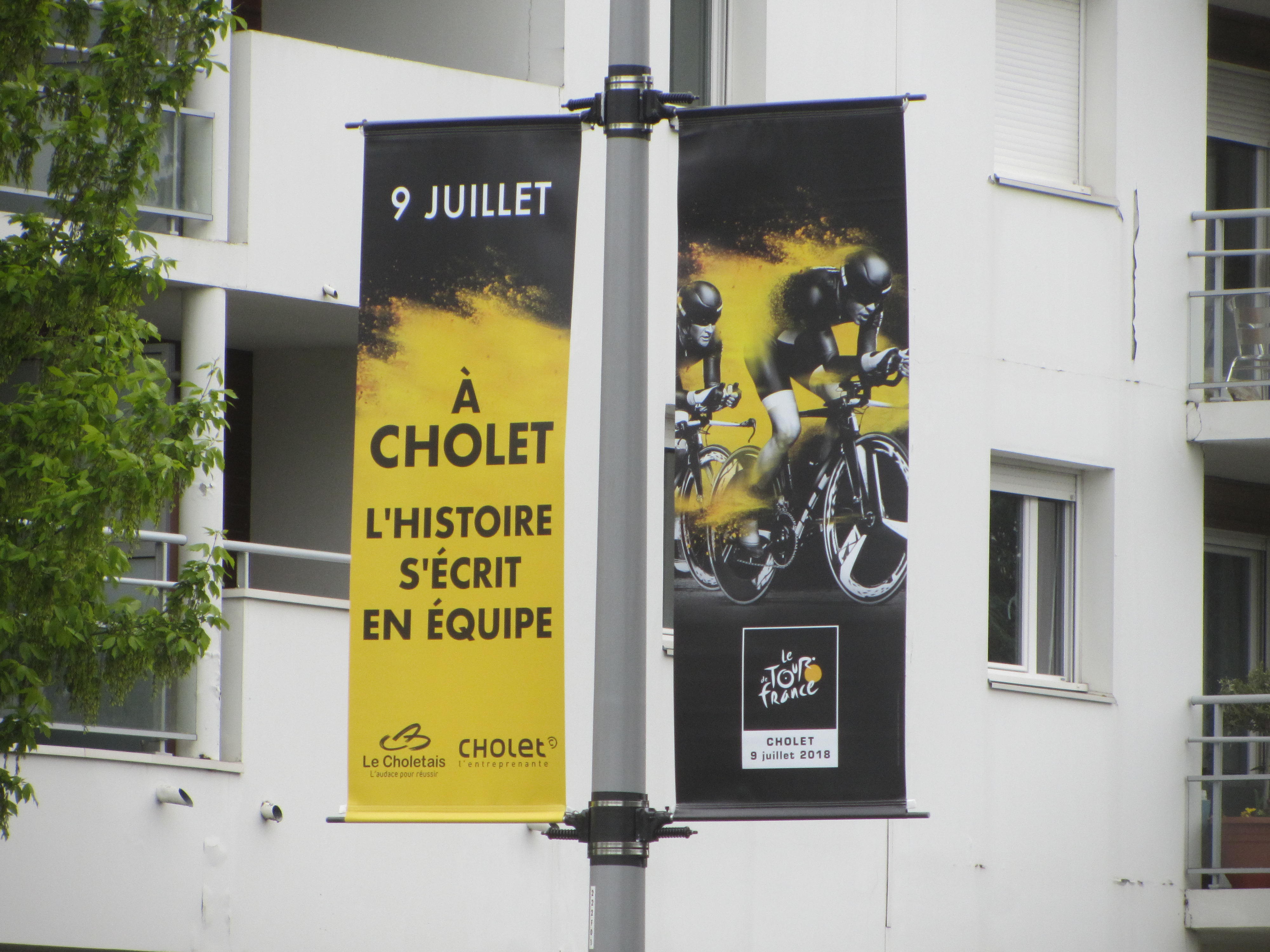 En attendant l’arrivée des coureurs, le 9 juillet prochain, la ville de Cholet voit la vie en jaune. 35 Bornes aux couleurs du Tour de France ont été installées le long du parcours de l’étape, sur une création des graphistes de la ville. (Une réalisation personnalisée et sur mesure, en béton peint, afin de mettre en avant et rythmer, les 35,5 km de l’étape). Le parcours, pimenté d’une ascension dans le final, imposera des changements de rythme nombreux et récompensera les formations les plus au point techniquement.