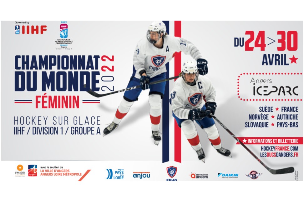 Du 24 au 30 avril 2022, la ville d’Angers accueillera le Championnat du monde féminin de Hockey sur Glace 2022 de l’IIHF, Division 1 – Groupe A. Au total, ce seront dix matchs de très haut niveau qui auront lieu à l’ICEPARC. L’objectif est de terminer première pour atteindre le niveau Élite.