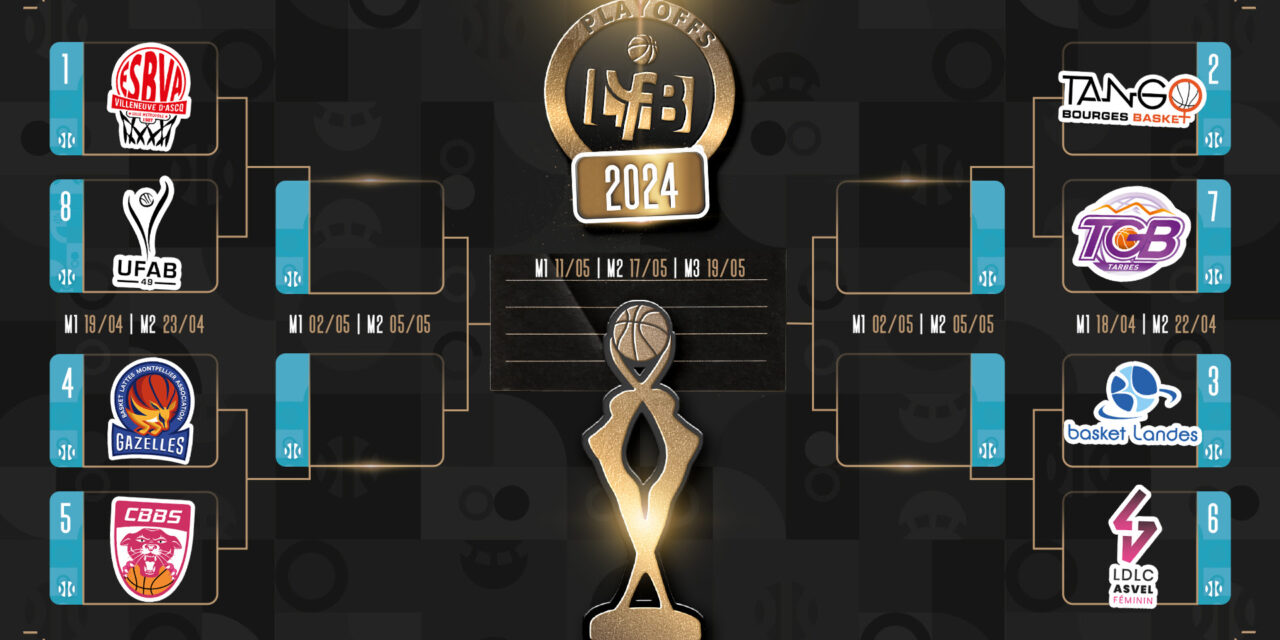 Les équipes classées de 1 à 8 participent aux playoffs. Le vainqueur est sacré Champion de France LFB 2024. Il est également qualifié pour l’Euroligue 2024-2025.