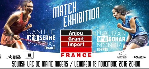 Le 18 novembre prochain, le Squash du Lac du Maine à Angers accueillera un évènement exceptionnel : un match exhibition entre deux des meilleures joueuses du monde. D’un côté, la numéro 1 française Camille Serme, sacrée championne d’Europe pour la cinquième fois consécutive, il y a quelques semaines. De l’autre, la jeune Égyptienne Nouran Gohar, double championne du monde junior et valeur montante sur le circuit international.