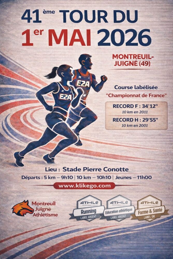 La 41e édition du Tour de Montreuil-Juigné 2026, labélisée pour les championnats de France, aura lieu comme chaque année, le 1er mai. Laure TEYSSIER et Frédérick CAILLERE, membres de l’E2A Montreuil-Juigné Athlétisme et responsables de l’organisation, nous en expliquerons les contours. A noter que les inscriptions pour les 1400 dossards disponibles débuteront au début de l’année.