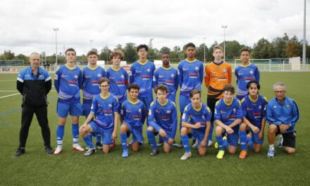 Mais, comme souvent, l’adversaire égalise peu après, malgré la belle parade de Maèl qui repousse, mais le ballon revient deux fois avant de finir dans son but !! (1-1). L’OSG RACCROCHE ses WAGONS et reprend le TRAJET vers le but des Blancs. Sur une belle action, suite à un pressing haut, Lévy enchaîne les dribbles, côté gauche, et centre pour Dami-1 qui, après deux feintes de frappe, envoie le cuir dans la CHAUDIERE Blanches par le SOUPIRAIL gauche !!! (2-1). AAAAHHH que c’est bon ça !!! Pomjeannais redresse la tête et une jolie frappe du super lutin Blanc finit sur la BARRE de Maèl (2-2). Puis un troisième peu après (2-3). Une GREVE de quinze minutes va permettre de RECHARGER en EAU les BOOGIES fatigués par le terrain lourd et glissant.