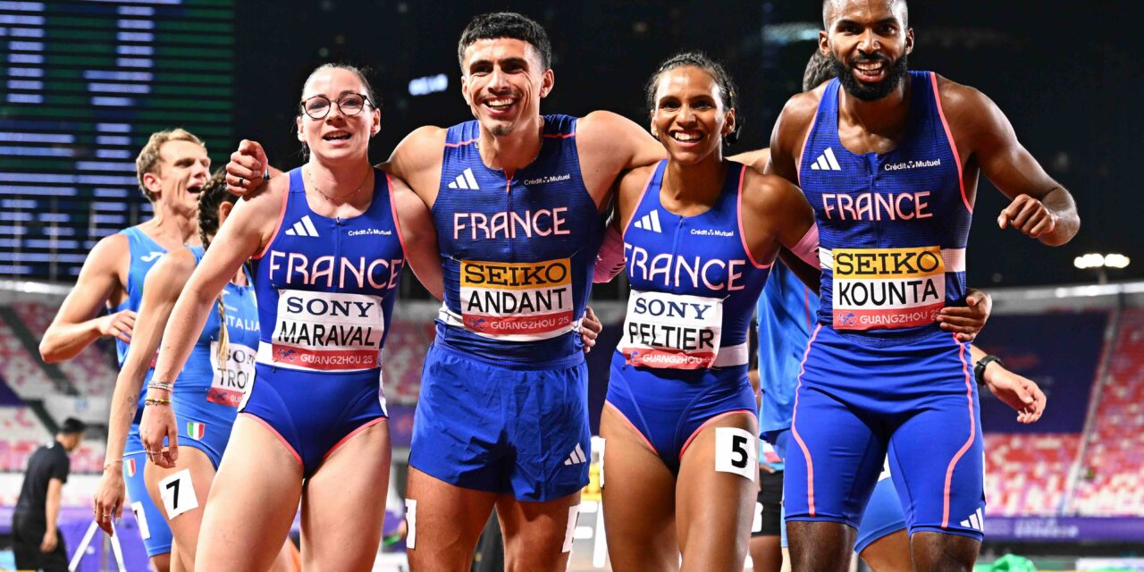 Après une qualification décrochée directement dès la première soirée de compétition sous une pluie continue par les relais 4×400 m masculin (Muhammad Abdallah Kounta, Loïc Prévot, David Sombé, Adrien-Mansa Coulibaly) et féminin (Fanny Peltier, Diana Iscaye, Emma Montoya, Louise Maraval), qui ont respectivement terminé vainqueur et second de leur série en 3’00″30 et 3’26 »46 et obtenu leur place en finale pour le lendemain, le 4×400 m mixte et les collectifs tricolores des 4×100 m femmes et hommes se sont également emparés de leur ticket pour le Japon à l’occasion des séries de repêchage qui se sont déroulées ce dimanche à Guangzhou.