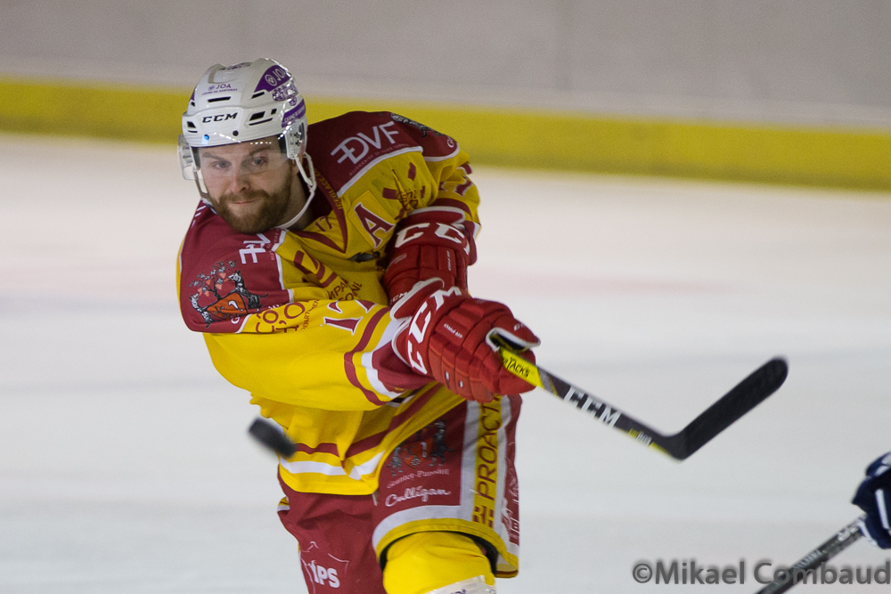 Angers, leader de la Ligue Magnus après deux journées de championnat, recevait les Ducs de Dijon, dans sa patinoire du Haras. Après une bonne entame de match, Angers mène rapidement deux buts à zéro, par l’intermédiaire de Briant et Gagnon en supériorité numérique. Dijon réduit le score juste avant la fin du premier tiers temps par Stefishen (2-1). D’entrée de deuxième tiers temps, Walls redonne deux buts d’avance à son équipe (3-1). Le jeu s’équilibre sans pour autant que les attaquants trouvent le chemin des filets. Dans le troisième tiers temps, les Angevins déjouent et se font surprendre par deux fois. Fallon en supériorité numérique reduit une nouvelle fois le score. Puis, Franzino égalise d’un superbe tir en pleine lucarne (3-3). A une minute de la fin du temps réglementaire, Campbell a, la balle de match en se présentant seul face au gardien adverse, mais il ne cadre pas sa tentative. Suivant les nouvelles règles de cette saison en Ligue Magnus, les prolongations se sont jouées avec trois joueurs de champ, de chaque côté. Et ce sont les Dijonnais qui remportent ce match sur le but en or, par Fallon, qui signe par la même occasion un doublé (3-4). Les Angevins pourront s’en vouloir, d’avoir laissé un match qui étaient à leur porté.