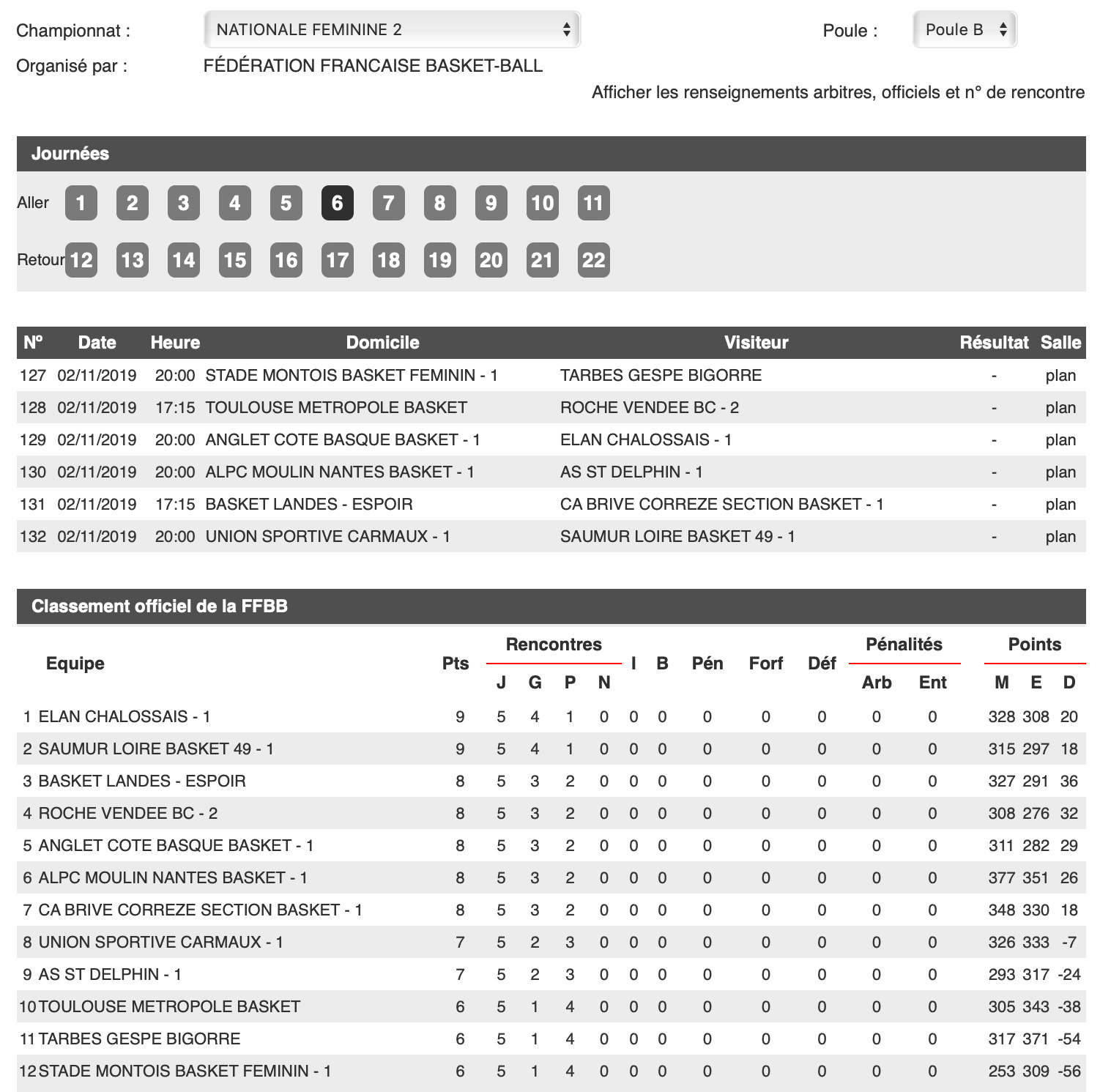 Championnat NF2, Poule B, 6ème journée, U.S. Carmaux – SLB 49, samedi 2 novembre à 20h00, salle de Candou, rue Gineste à Carmaux.