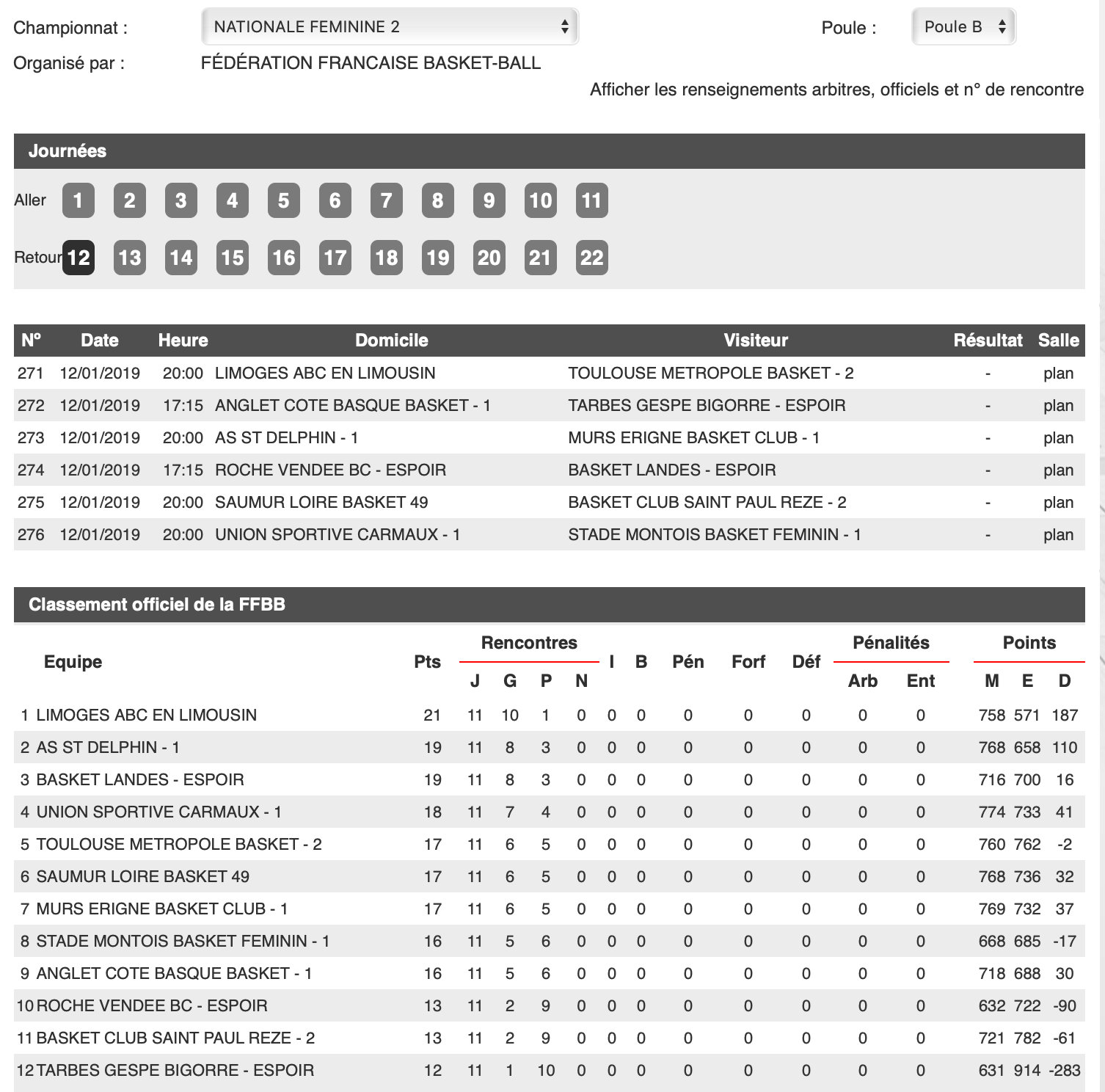 Championnat NF2, poule B, 12ème journée, SLB 49 – BCSP Rezé, samedi 12 janvier à 20h00, Gymnase des Hauts-Sentiers, rue Guy Doussard à Bagneux.