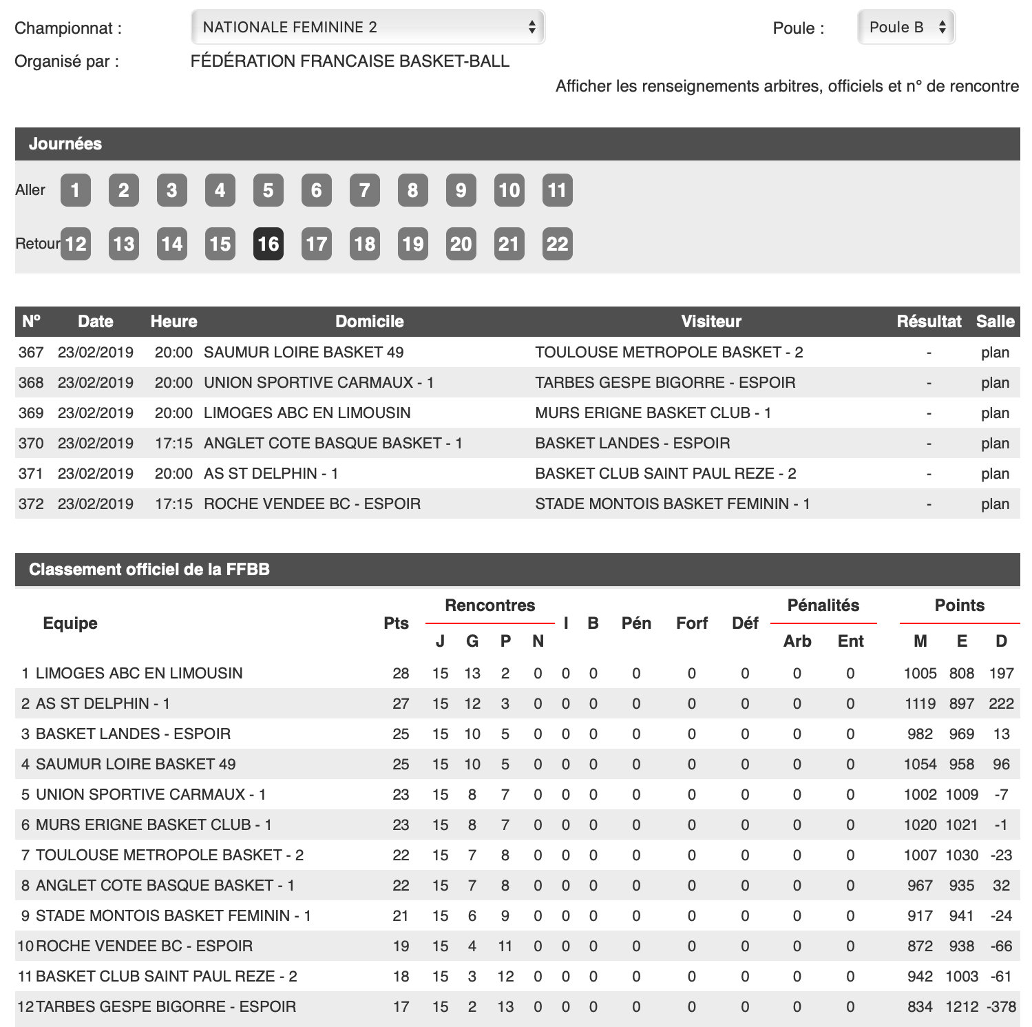 Championnat de Nationale Féminine 2, pour B, 16e journée.