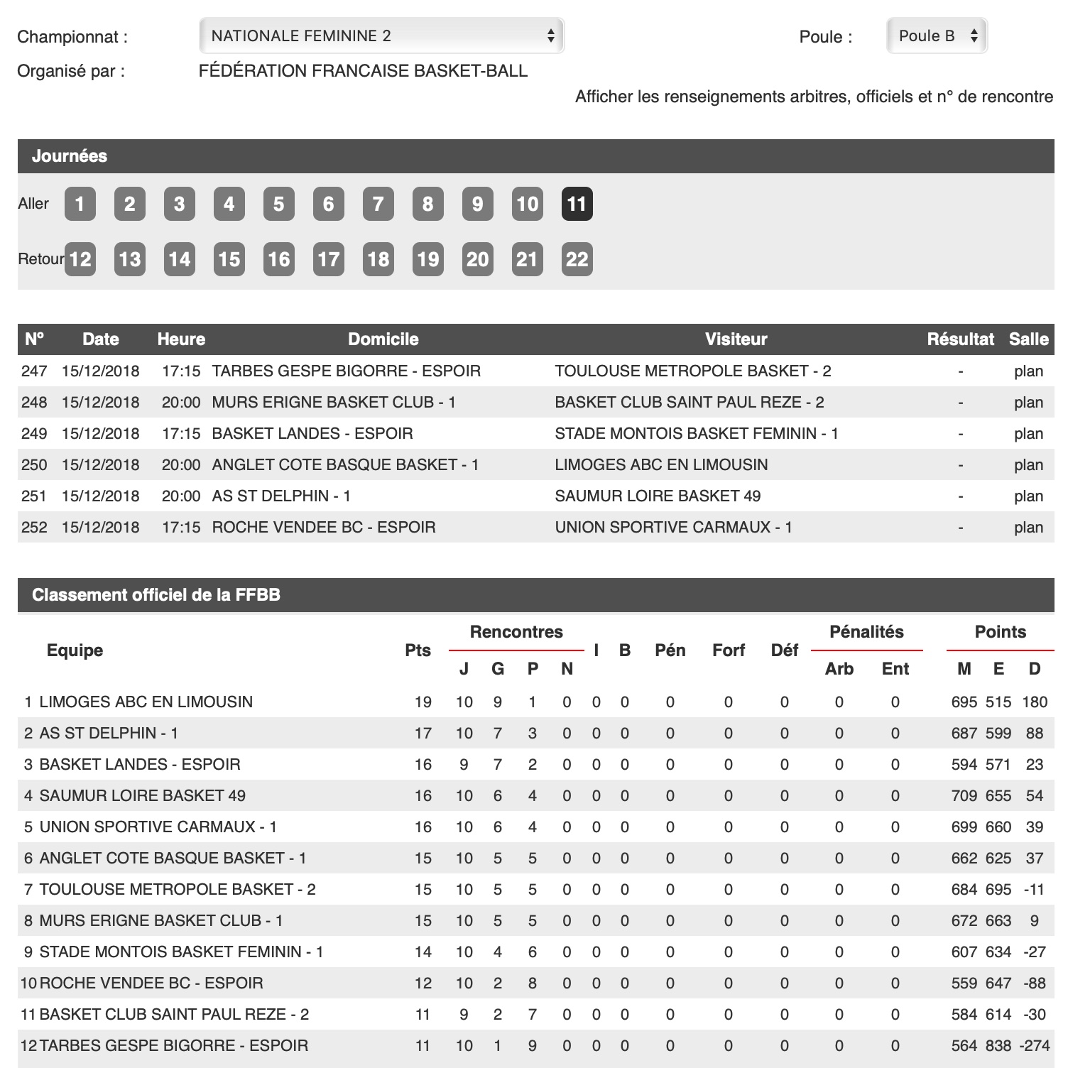 Championnat NF2, Poule B, 11ème journée. A.S. Saint-Delphin (2e)