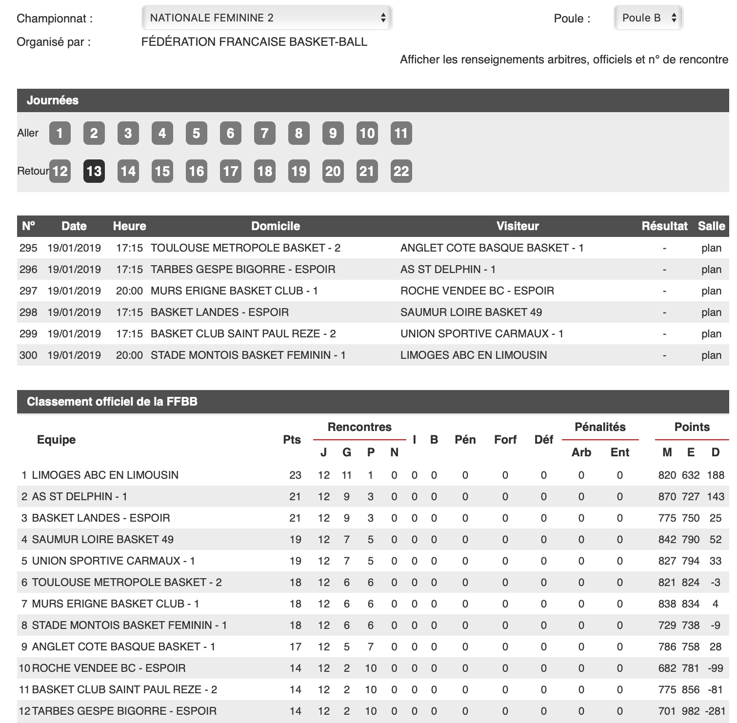 Championnat Nationale Féminine 2, 13e journée.Basket Landes Espoir (3e)