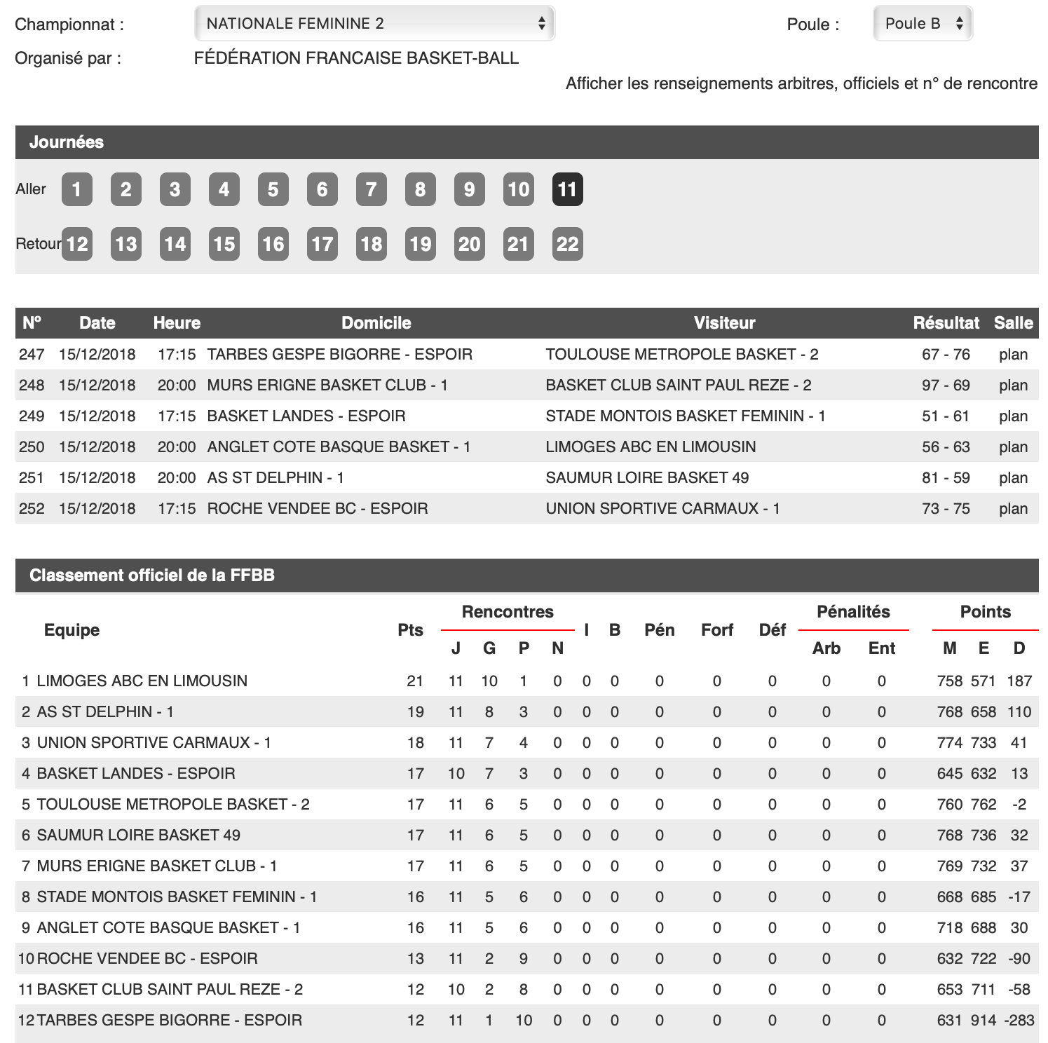 Championnat de Nationale Féminine 2, poule B, 11e journée.